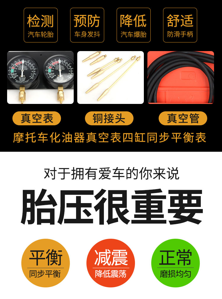- Key Specs & Performance: Features four independent gauges for simultaneous reading, allowing for precise adjustment of carburetor balance, preventing steering wheel shake and supporting tire pressure detection.