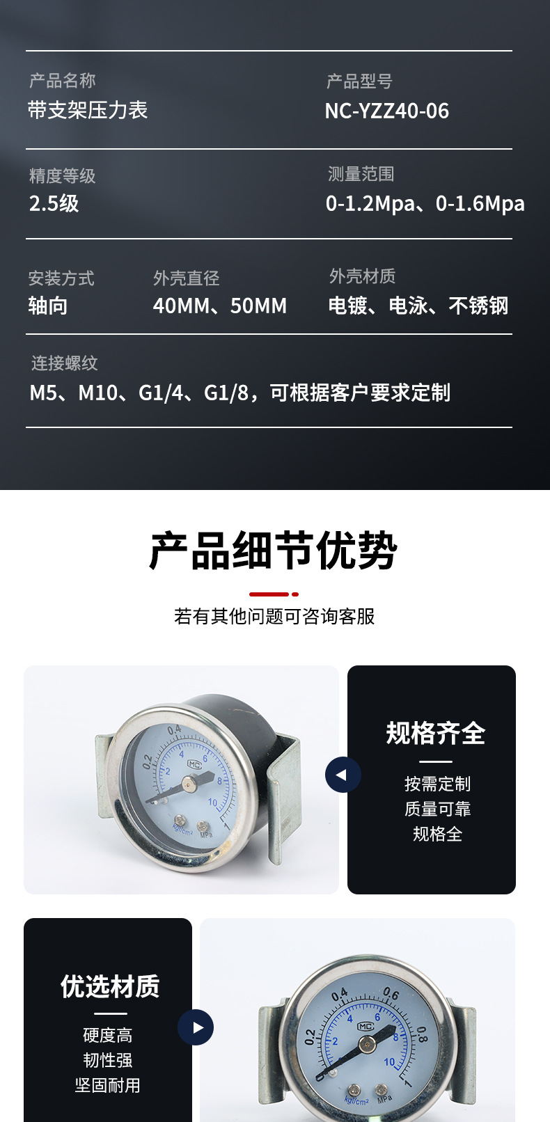 - Key Specifications: Features a 40mm nominal diameter and a measurement range of 0-1 MPa (0-10 kg/cm²), ensuring precise readings for various applications.