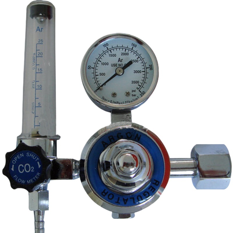 Argon Gas Pressure Regulator with Dual Flow Meters for Welding, Single Stage Pressure Reducer, 0-25 MPa