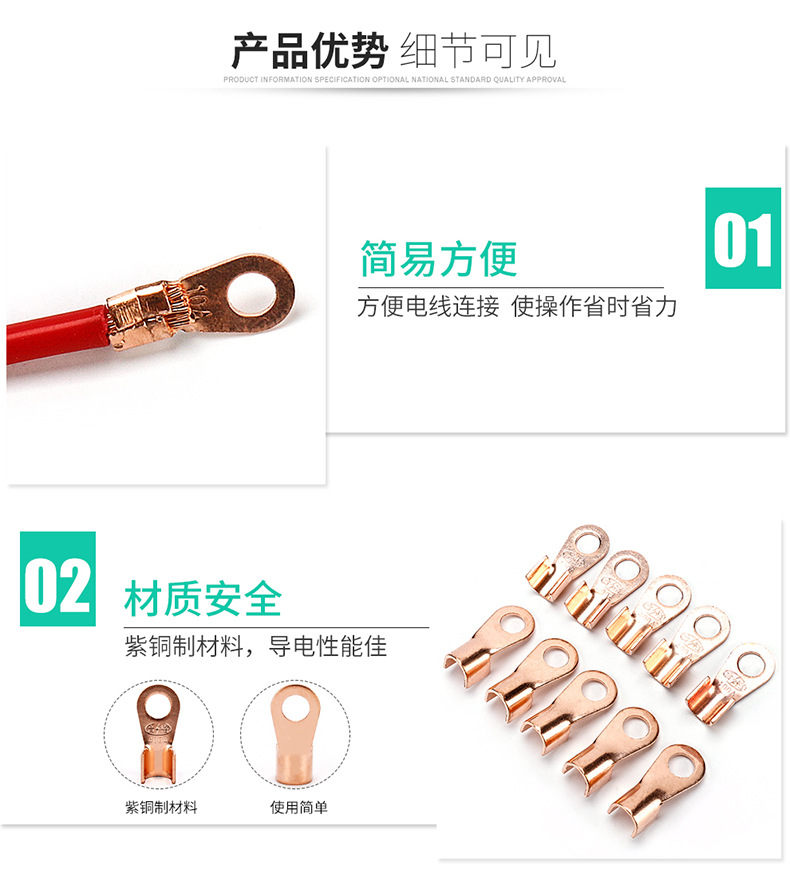 National Standard A-Grade Copper Wire Connector OT Open Nose Terminals 5A-1000A Selectable