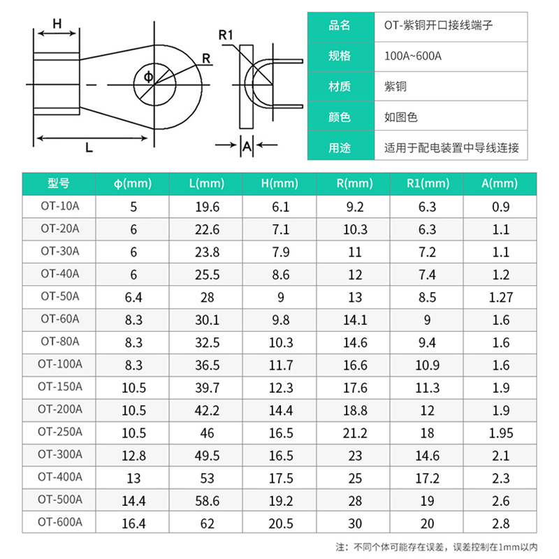 Be the first to review “National Standard A-Grade Copper Wire Connector OT Open Nose Terminals 5A-1000A Selectable” Cancel reply