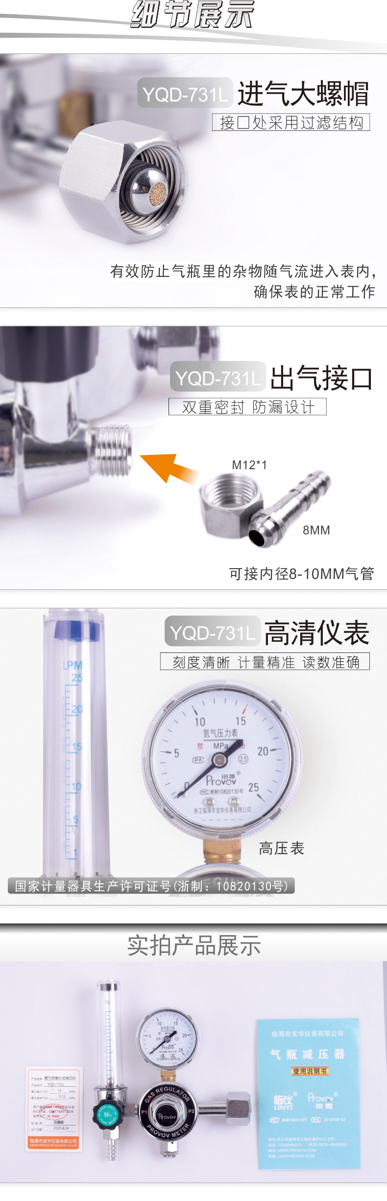 Nitrogen Gas Flowmeter Regulator YQD-731L Single Stage Pressure Gauge for Laboratory N2 Tail Gas Detection