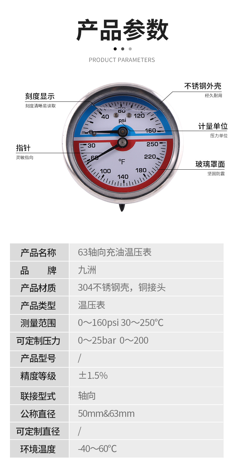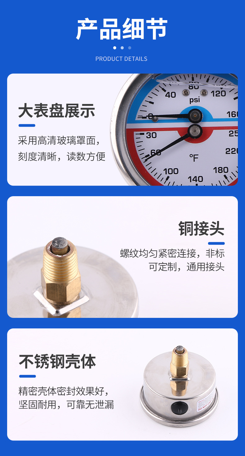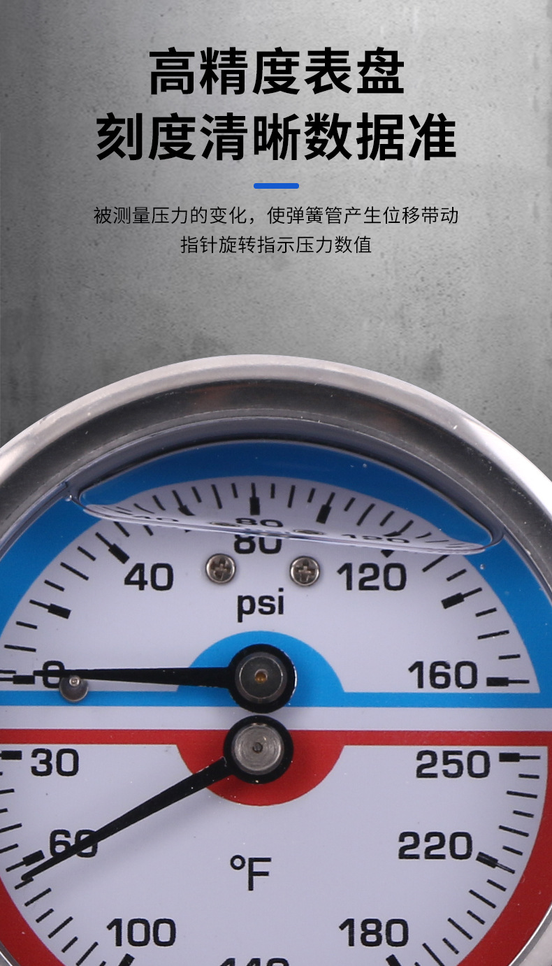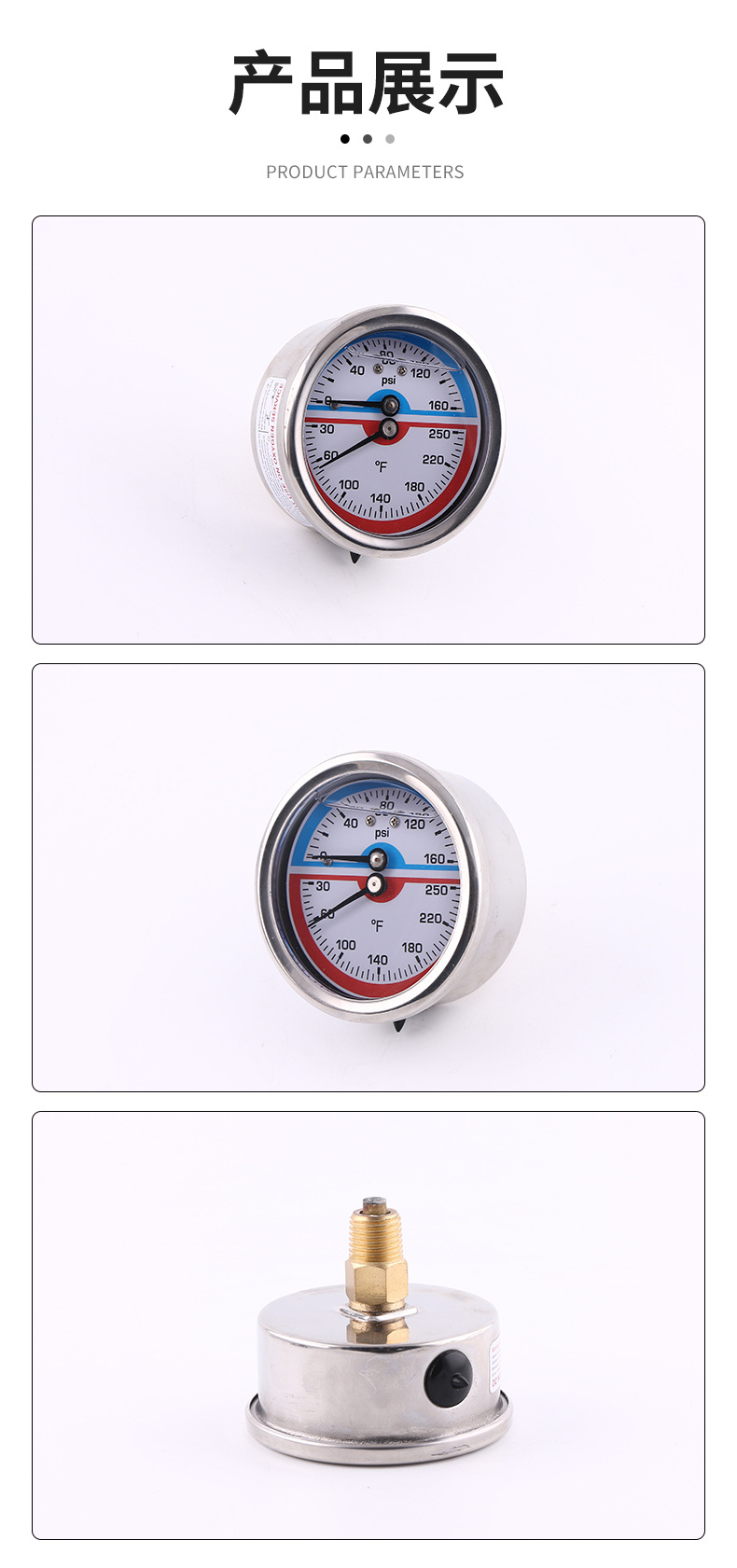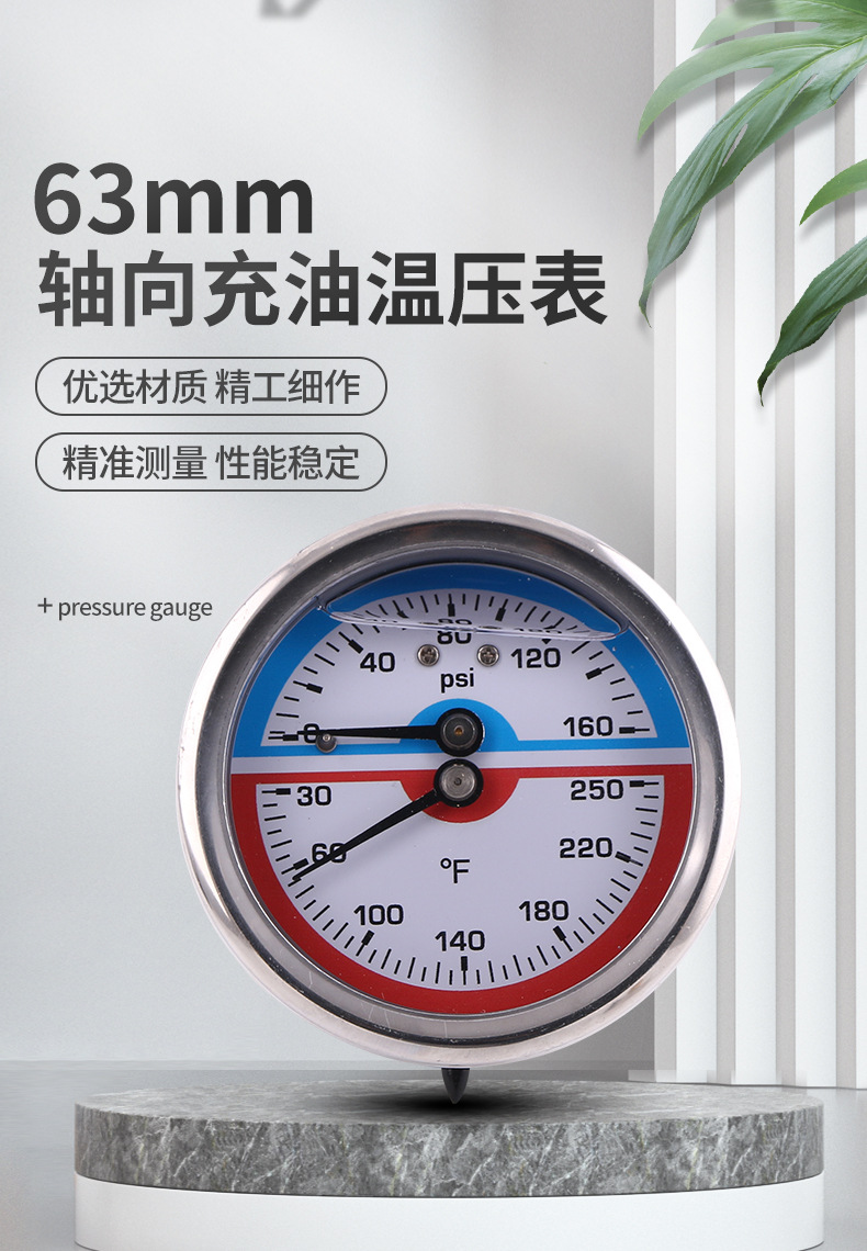 - Wide Compatibility: Specifically designed as a 63mm axial oil-filled thermometer pressure gauge, compatible with various HVAC and industrial systems requiring precise pressure and temperature monitoring.