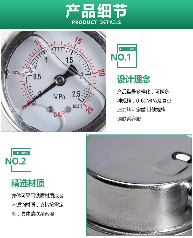- Precise Key Specifications: Offers a clear measuring range of 0-2.5 MPa (0-25 Bar), ensuring accurate readings for critical pressure monitoring with KL2.5 accuracy class.