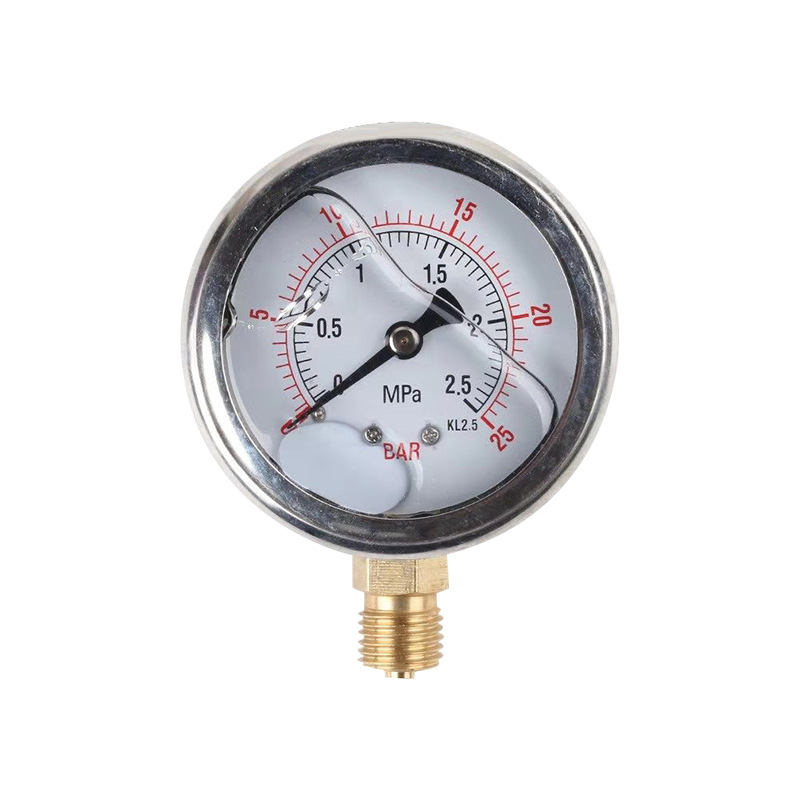 Oil Filled Pressure Gauge (0-2.5 MPa, 0-25 Bar) with 304 Stainless Steel Housing and Radial Connection For Oil, Gas, Liquid, Water Systems