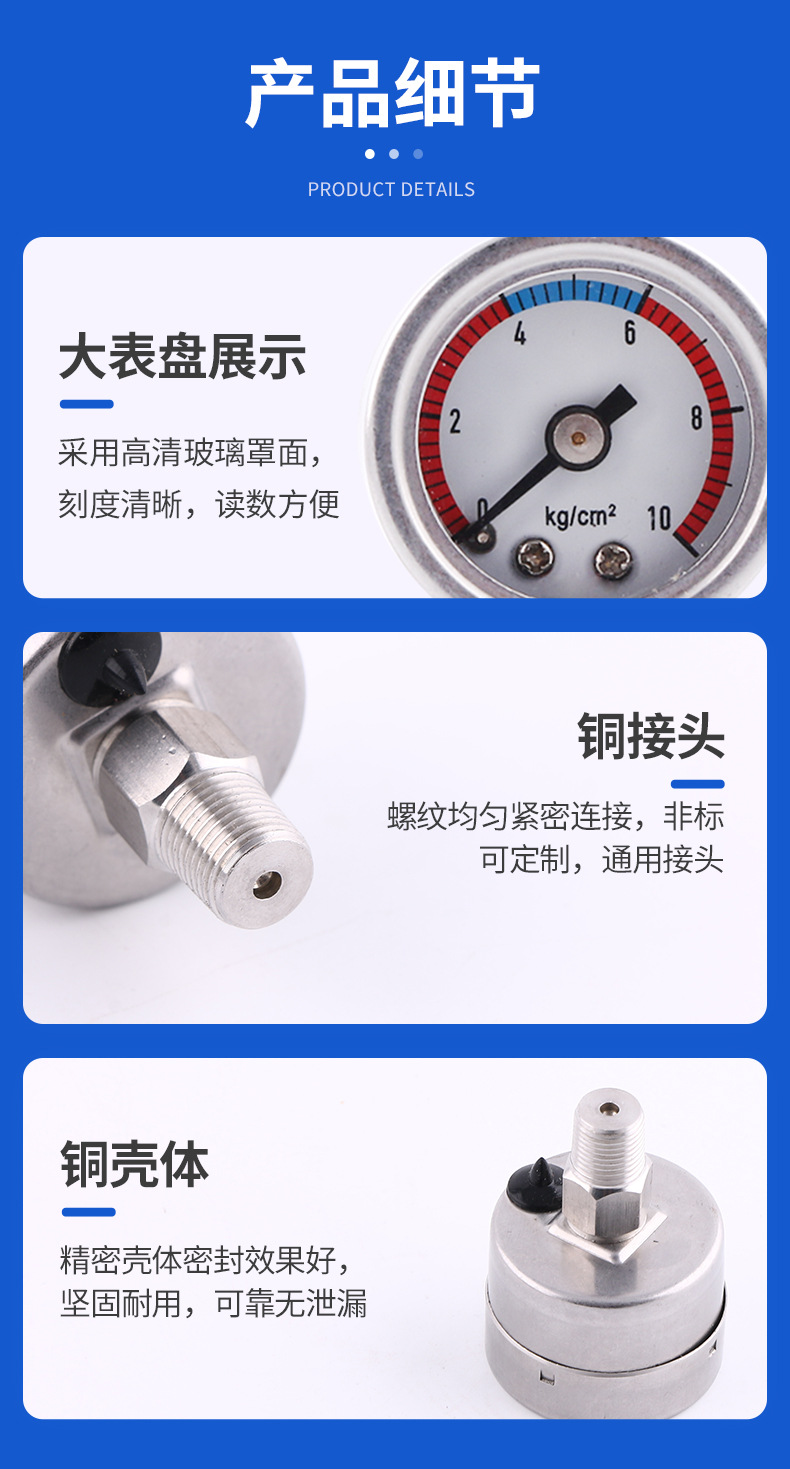 - Key Specs & Performance: Features a 30mm nominal diameter, axial connection for easy installation, and a measurement range of 0-10 kg/cm², offering accurate pressure monitoring with an accuracy class of ±2.5%.