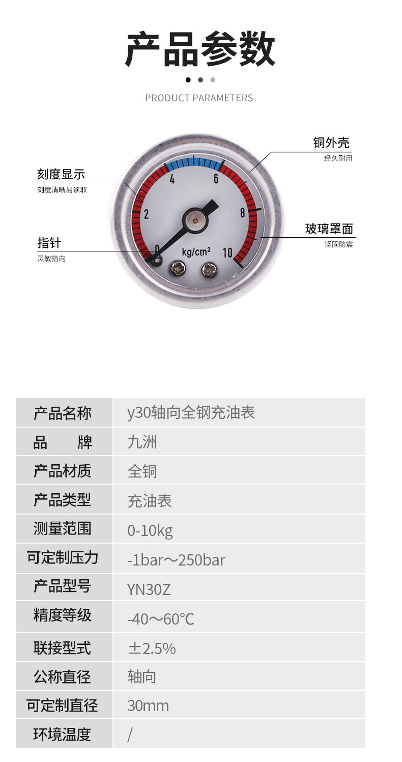 - What You Get: One YN30Z oil-filled pressure gauge (0-10 kg/cm²). Backed by reliable manufacturing, this gauge provides a dependable solution for your pressure measurement needs.