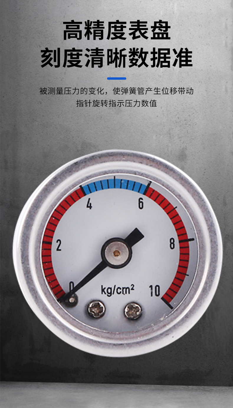 - Easy Installation: Designed for straightforward axial mounting, this pressure gauge can be quickly and securely installed without complex tools, minimizing downtime for maintenance or replacement.