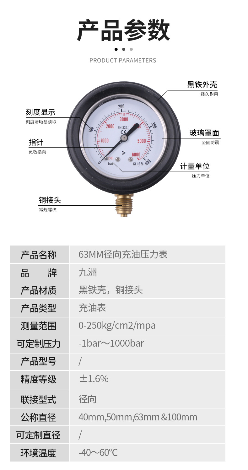 - Easy Installation: Designed with a standard radial connection, this 63mm oil-filled pressure gauge offers straightforward and quick installation, minimizing downtime.