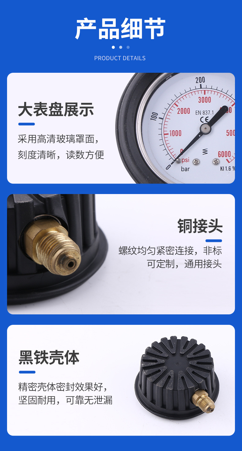 Hongqi Y-60 Pressure Gauge Water Pressure Vacuum Negative Pressure Meter for HVAC Firefighting Tire Pressure