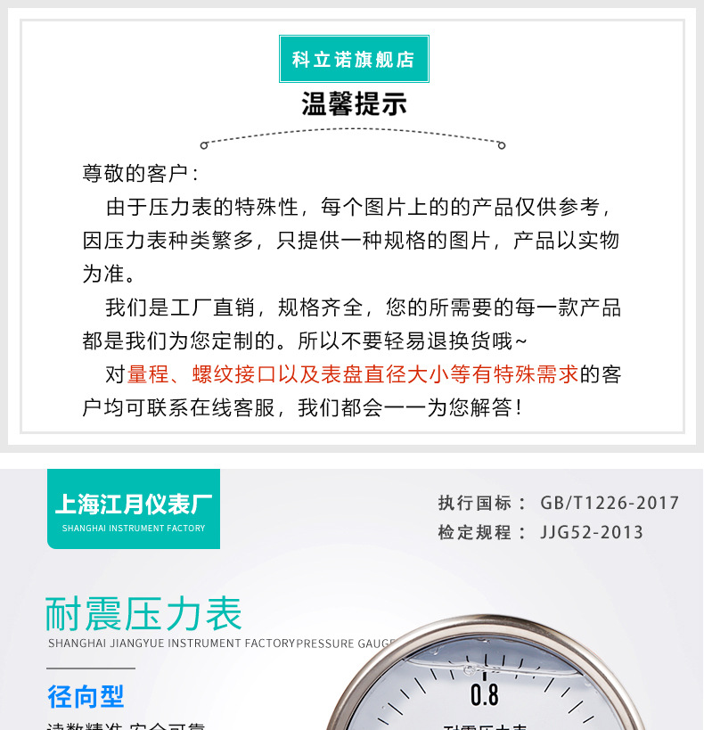 - What You Get: One YN-100 shock-resistant pressure gauge from Shanghai Jiangyue, designed for stability and longevity in challenging environments.