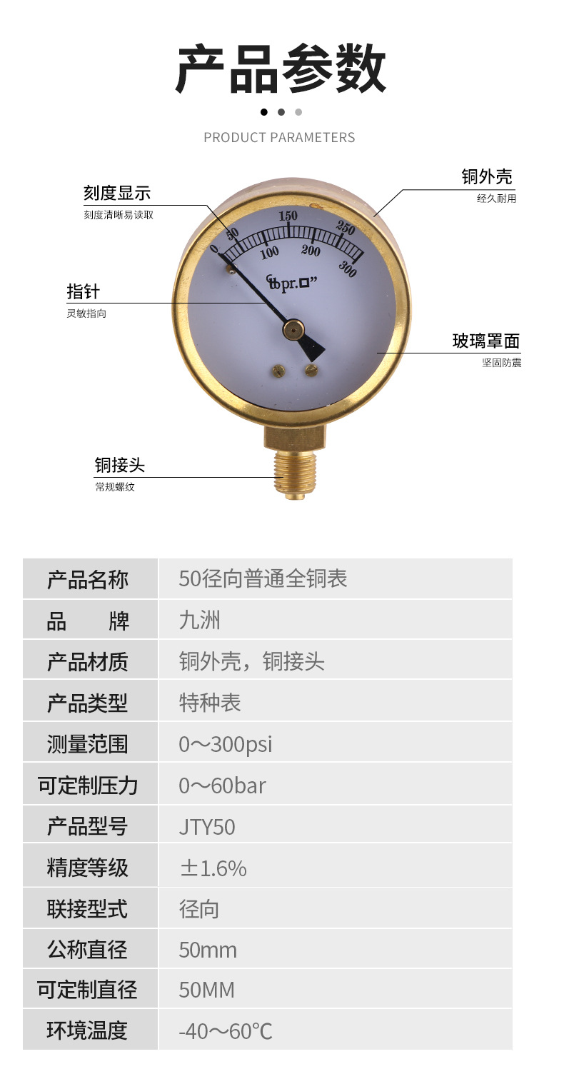 - What You Get: Includes one high-quality copper pressure gauge, model JTY50, ready for immediate use, backed by robust construction and reliable performance standards.