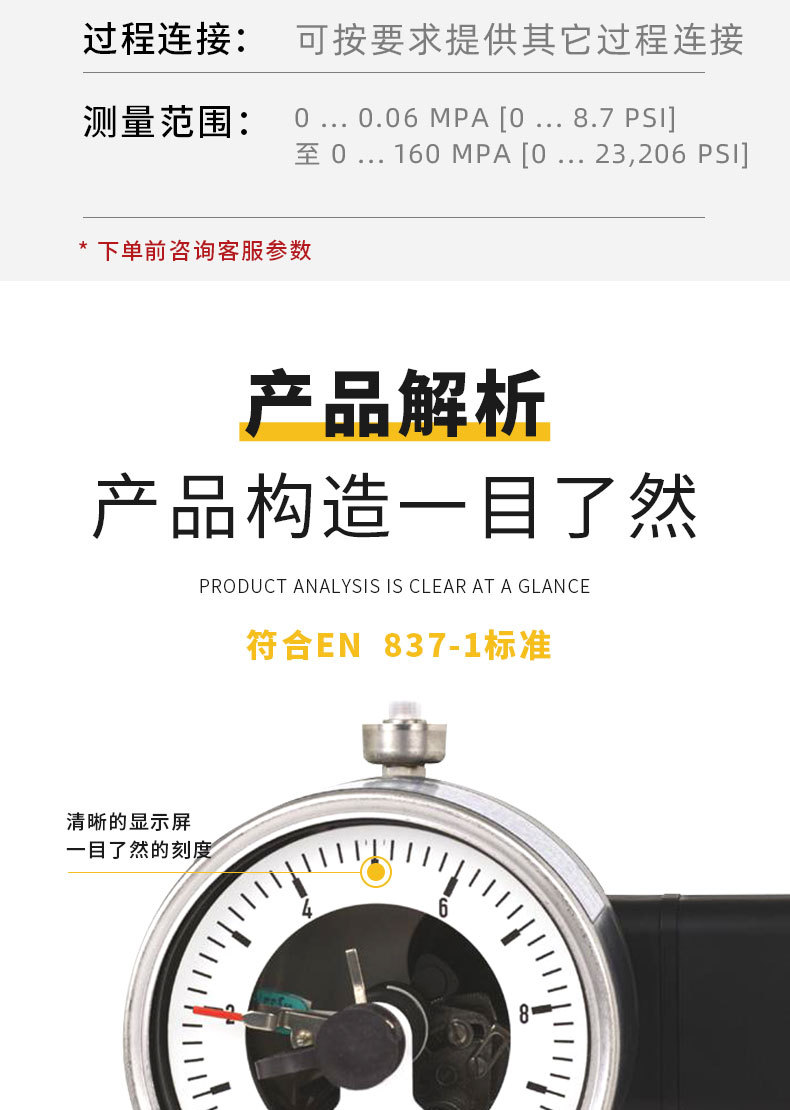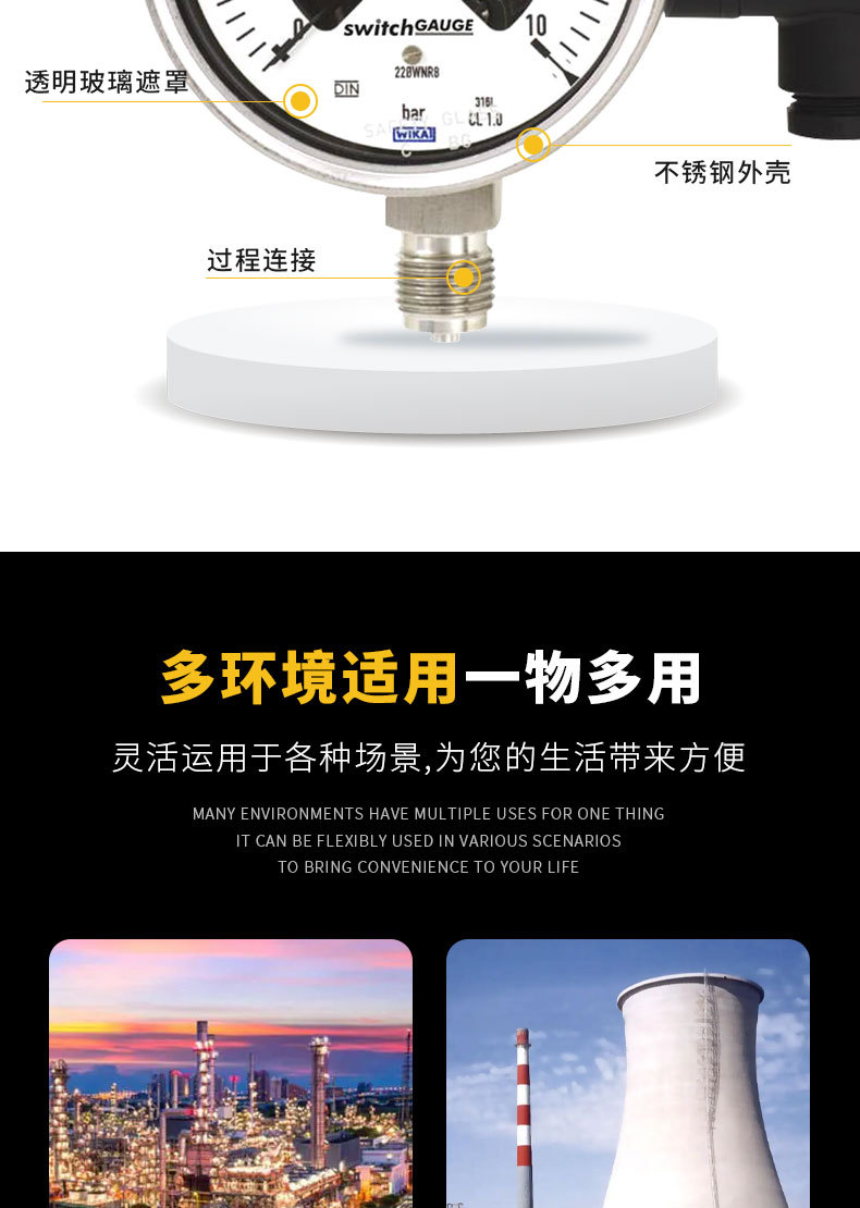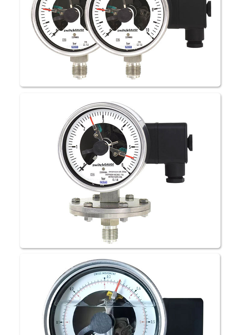 - Precise Key Specs & Reliable Performance: Features a clear dial with 0-10 bar measuring range, DIN standard compliance, and SwitchGAUGE technology for accurate and stable electric contact pressure measurement, enhancing operational safety and efficiency.