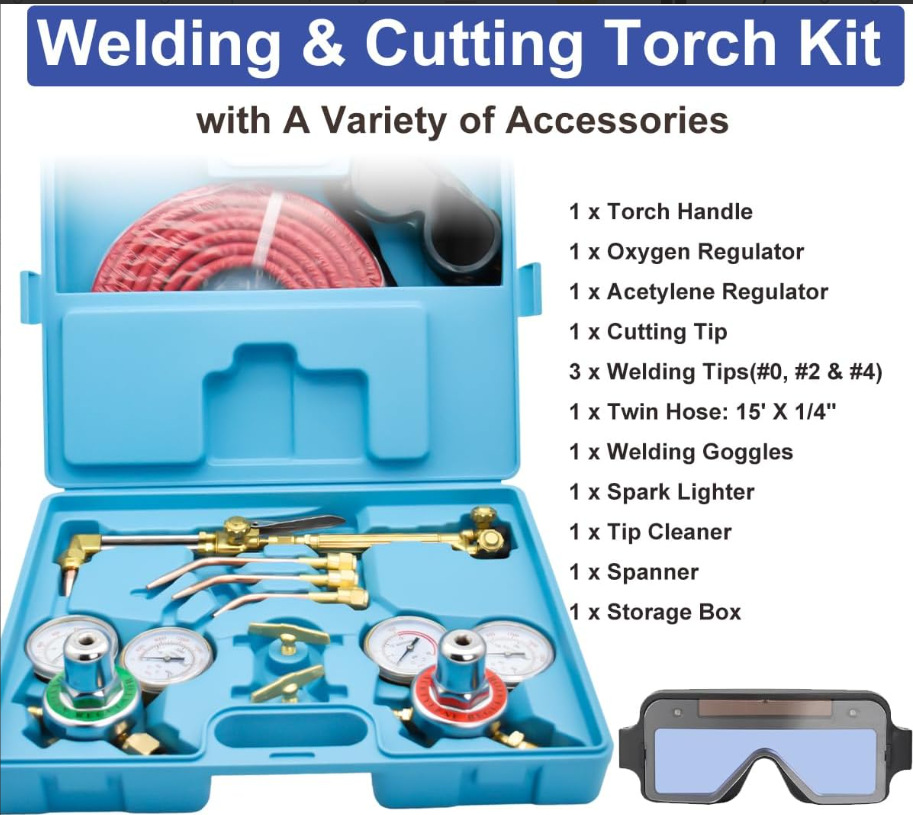 Oxygen Acetylene Gas Cutting Torch & Welding Kit with Regulators, Hoses, and Goggles for Industrial and DIY Projects