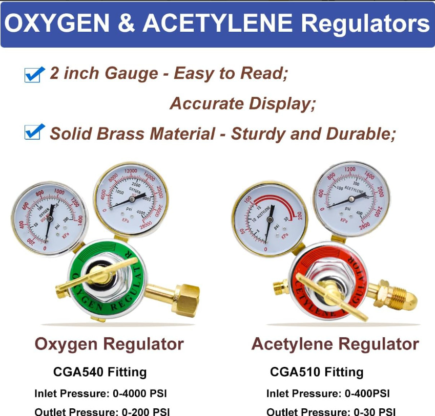 - Precise Control: Equipped with high-pressure gauges for both oxygen and acetylene, allowing for accurate pressure adjustment and consistent flame control for precise cuts and welds.