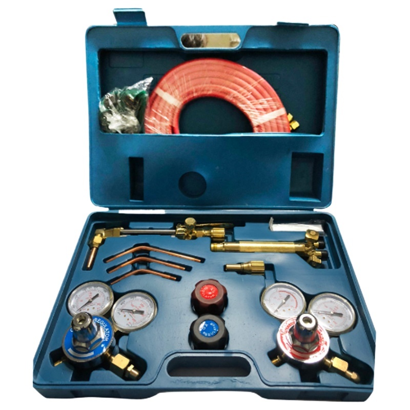- Comprehensive Kit: This complete oxygen acetylene welding and cutting torch kit includes all the essential tools: torch handle, cutting attachment, welding nozzles, oxygen and acetylene regulators with gauges, and hoses.