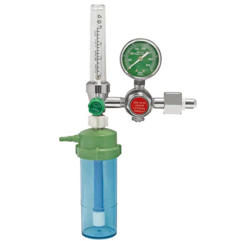 Oxygen Inhaler Flowmeter Regulator with Pressure Gauge and Humidifier Bottle, 0-15 L/min Flow, 0-25 MPa Pressure