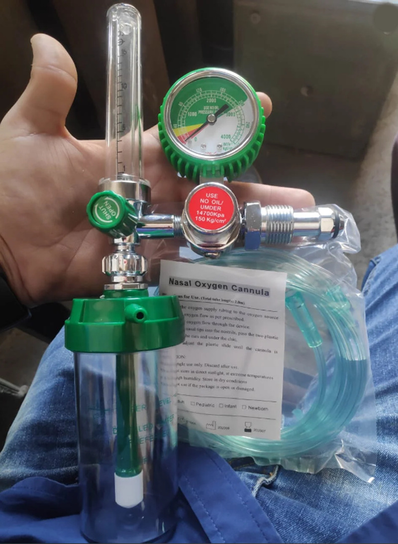 Oxygen Inhaler Flowmeter YR-88 (0-25 MPa, 1-10 L/min) with Oxygen Mask for Oxygen Cylinder Therapy
