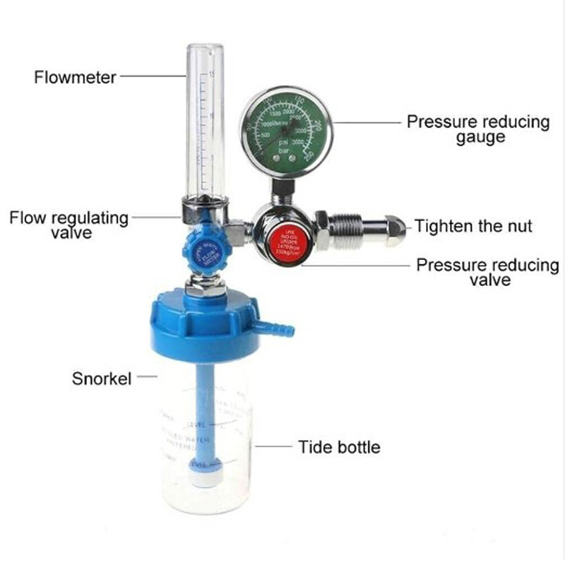 Oxygen Inhaler Pressure Reducer Flow Meter Regulator (0-25MPa, 1-10L/min) with Flow Gauge for Oxygen Cylinders