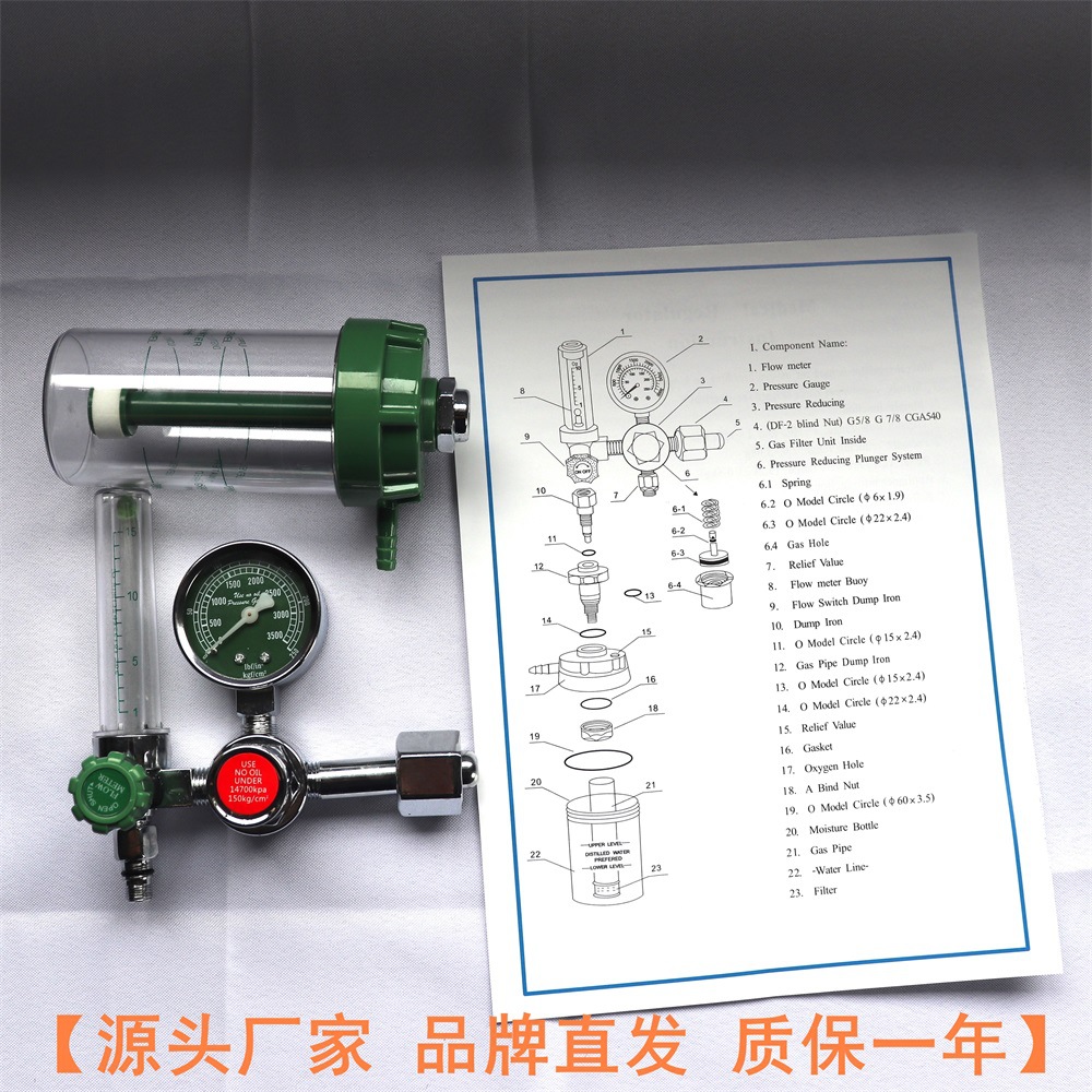 - Key Specs & Performance: Equipped with a clear 0-15 L/min flow meter and a precise pressure gauge (0-3500 psi/0-250 kgf/cm²), providing accurate measurements for controlled oxygen delivery with an outlet pressure of 0.1-0.3 MPa.