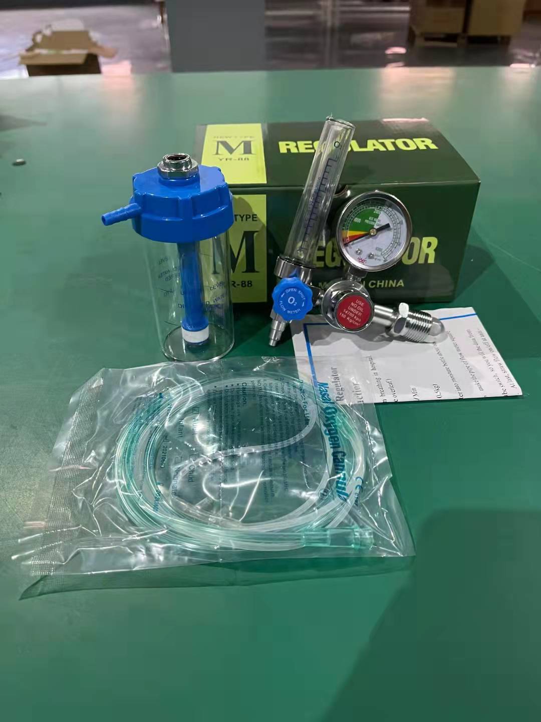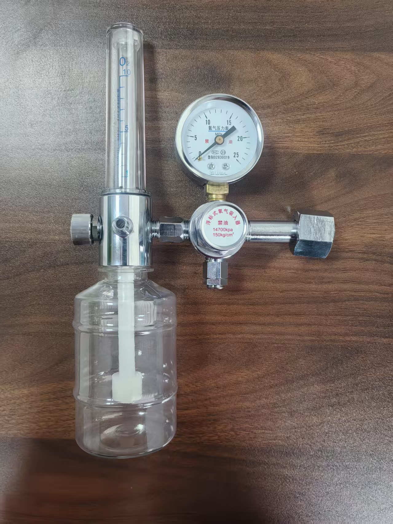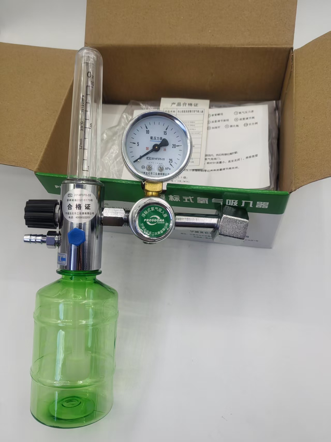 Oxygen Inhaler Regulator with Flow Meter and Humidifier Bottle, 1-15L/min Flow, 0-25MPa Pressure