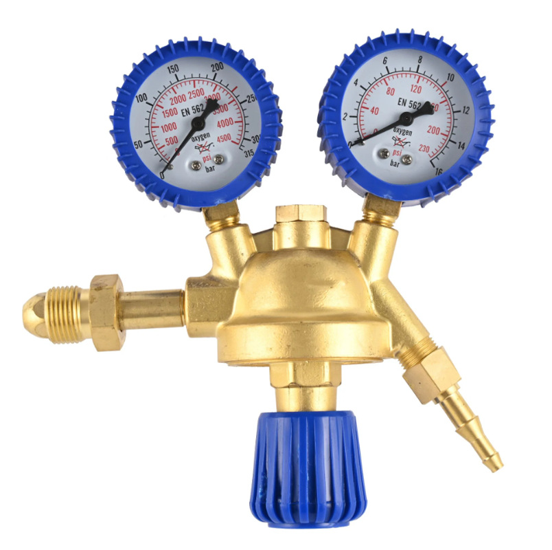 Oxygen Pressure Regulator WIKA Gauges (2.5-25 MPa) (1.25 MPa Outlet) (40-50 m³/h Flow) for Industrial Welding & Cutting