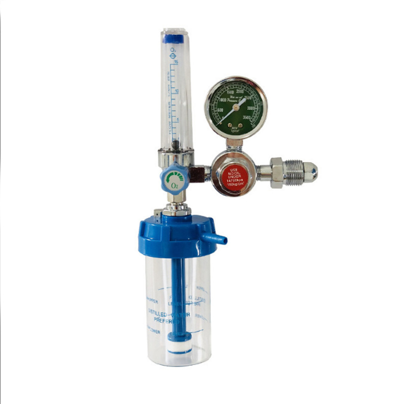 Oxygen Pressure Regulator with Flow Meter and Humidifier Bottle (0-25 MPa Input, 0.25 MPa Output, 1-10 L/min Flow) for Oxygen Cylinder, Male Thread