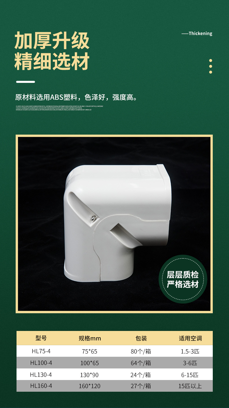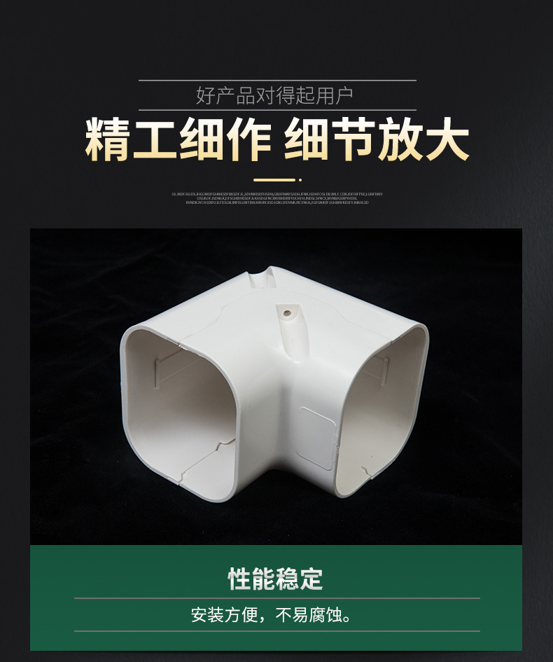 PVC Air Conditioner Decorative Duct Cover Vertical Bend (75x65mm/100x65mm/130x90mm/160x120mm) for HVAC Duct Systems
