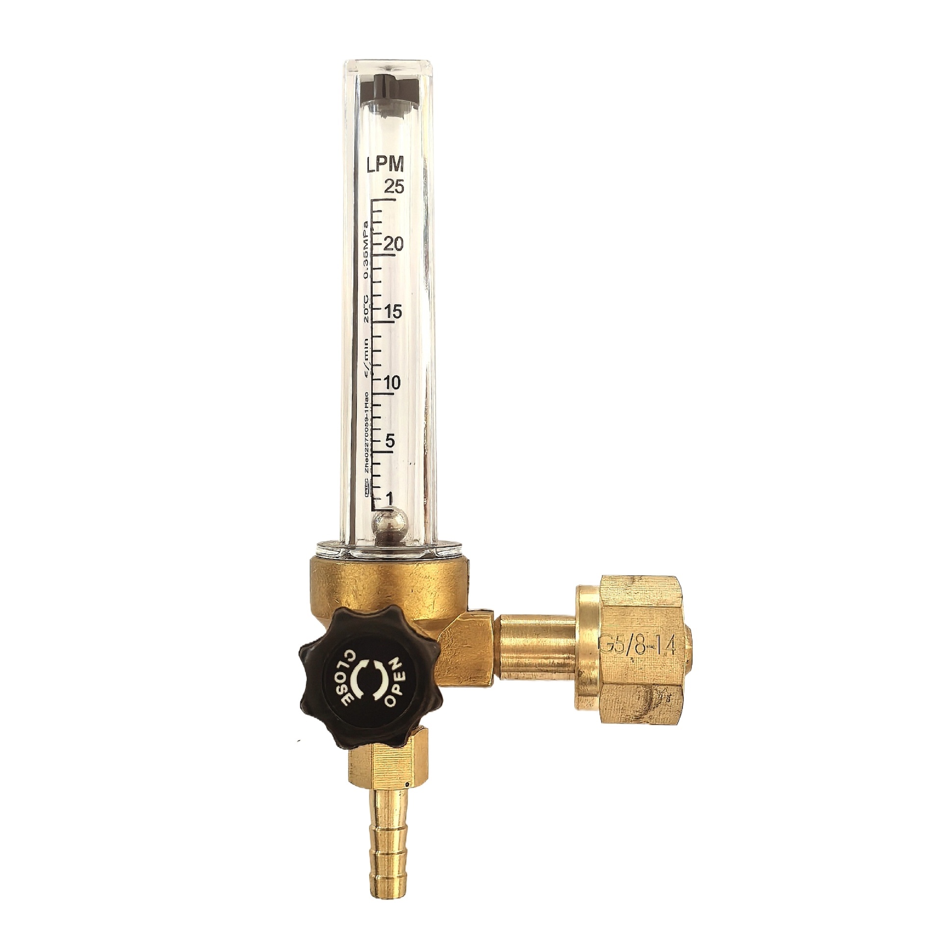 Pipe Flow Meter (0-25LPM, G5/8-14 Female, 8mm Barb) for Gas Pipeline Systems, Replaces WL-06