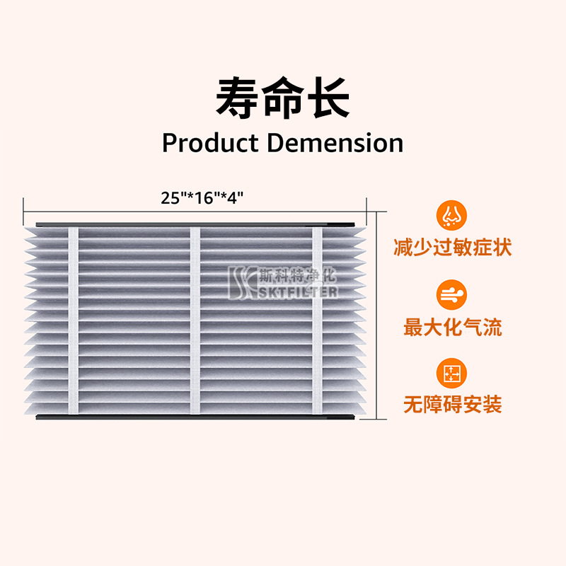 - Quality Filtration Media: Made with high-quality pleated filter media, ensuring efficient capture of dust, pollen, 0.3 micron particles, and allergens.
