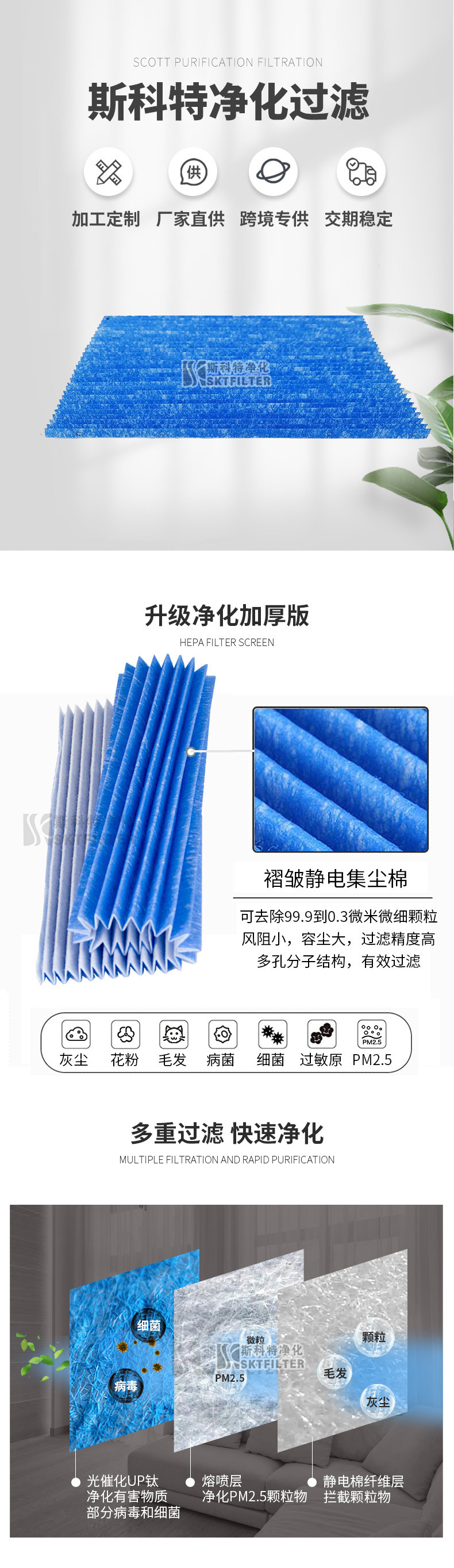 - Premium Filtration Media: Constructed with high-quality pleated filtration material, engineered to capture fine particles and improve air quality effectively, as seen in the clear product image.