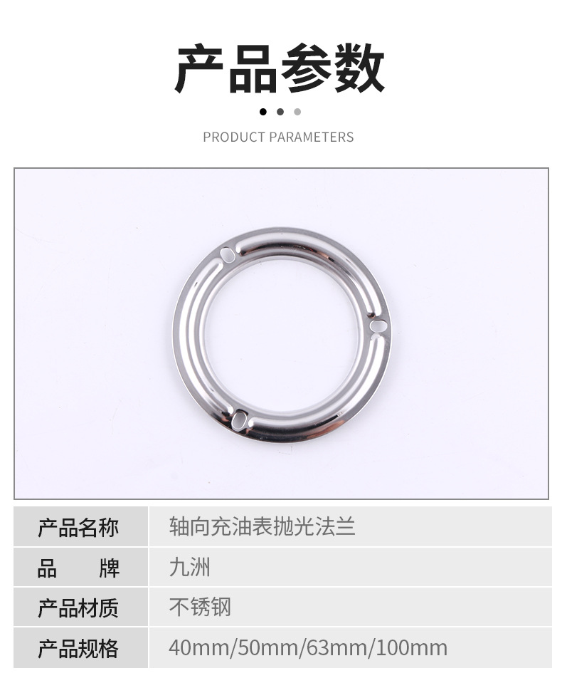 Polished Axial Oil Filled Pressure Gauge Flange (40mm, 50mm, 63mm, 100mm) Stainless Steel, Compatible with Oukate Meters, Jiuzhou Instruments