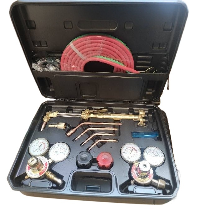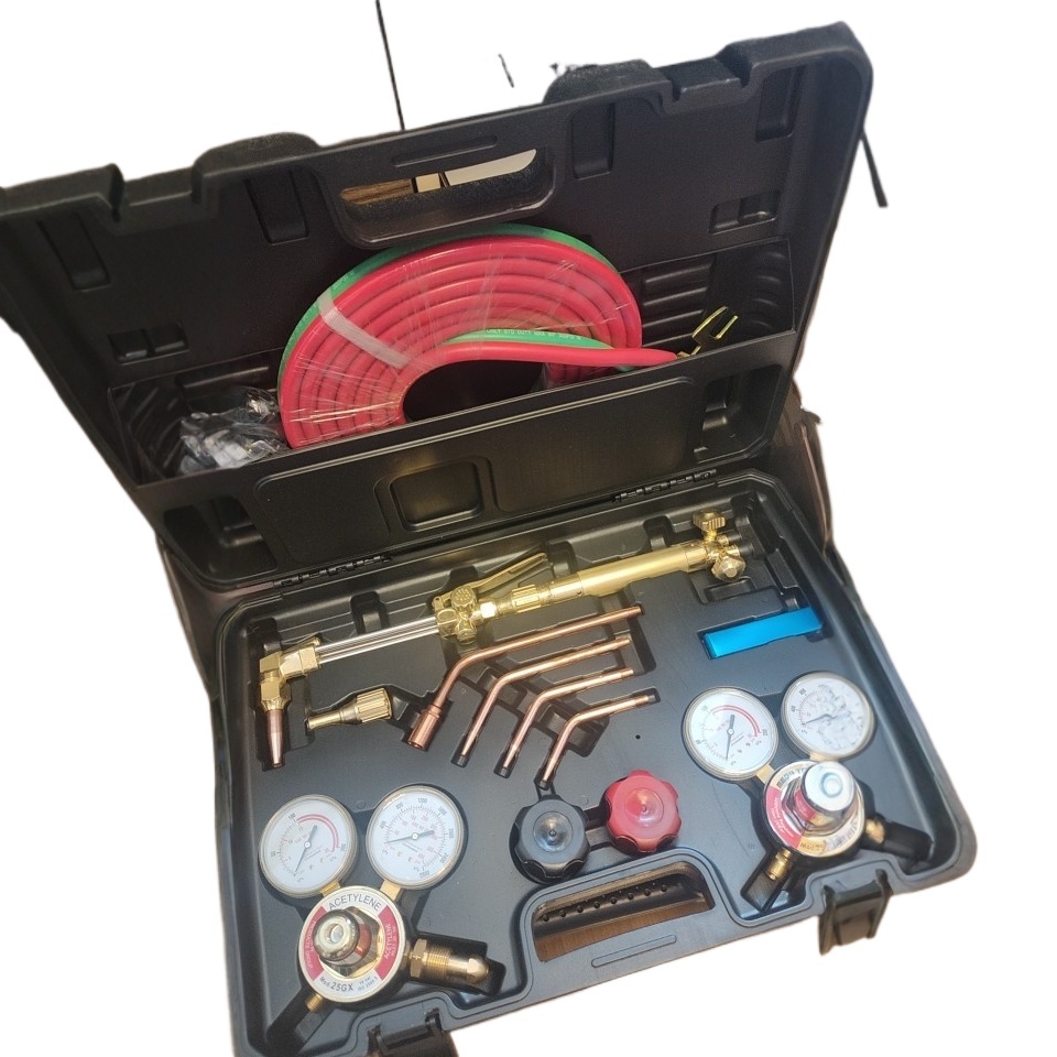 - Complete Kit Content: Includes a full set of welding and cutting tips, two pressure regulators, durable hoses, and a sturdy carrying case for organized storage and convenient transport, offering exceptional value.