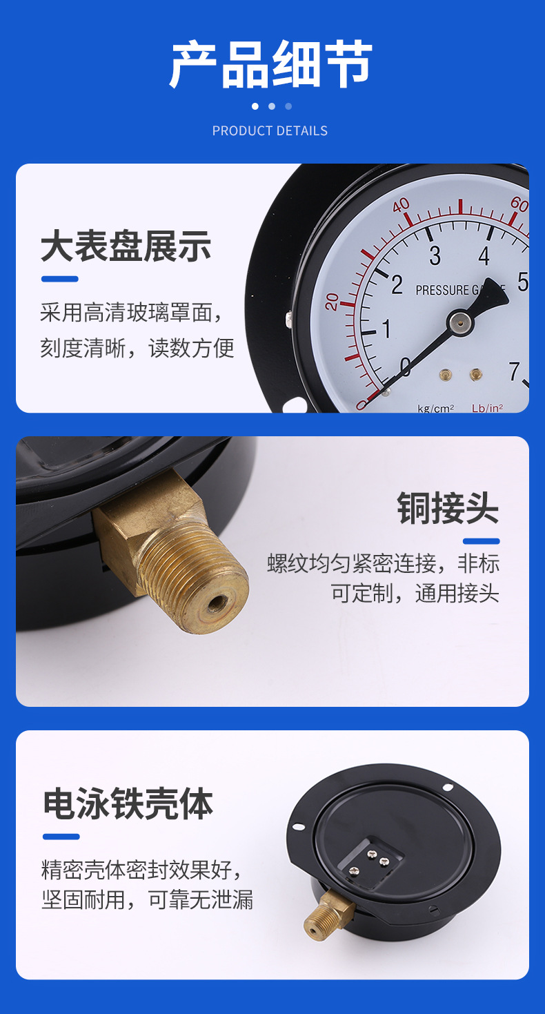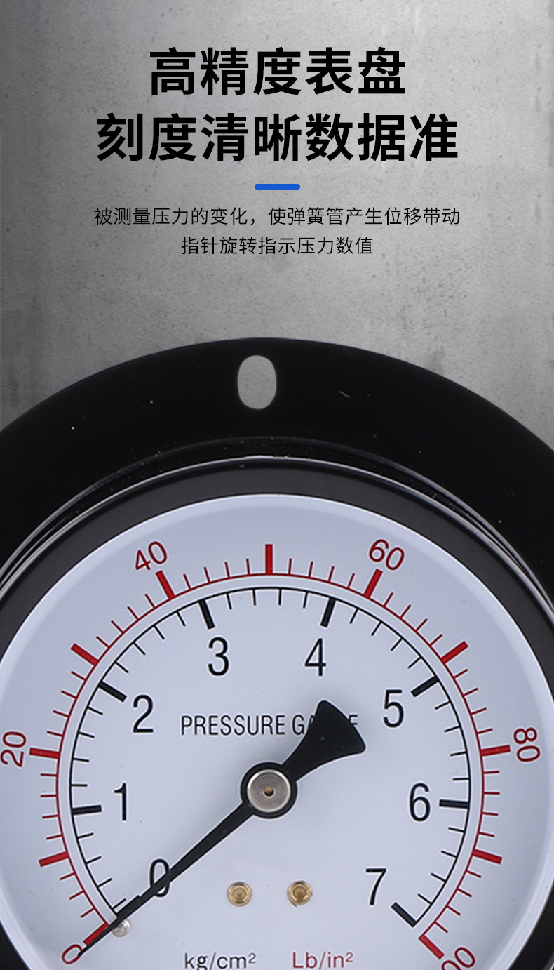 - Wide Compatibility: Designed for versatile use in HVAC systems, this pressure gauge is compatible with various setups requiring accurate pressure monitoring. It features multiple diameter options (40mm, 50mm, 63mm, 100mm) and customizable pressure ranges.