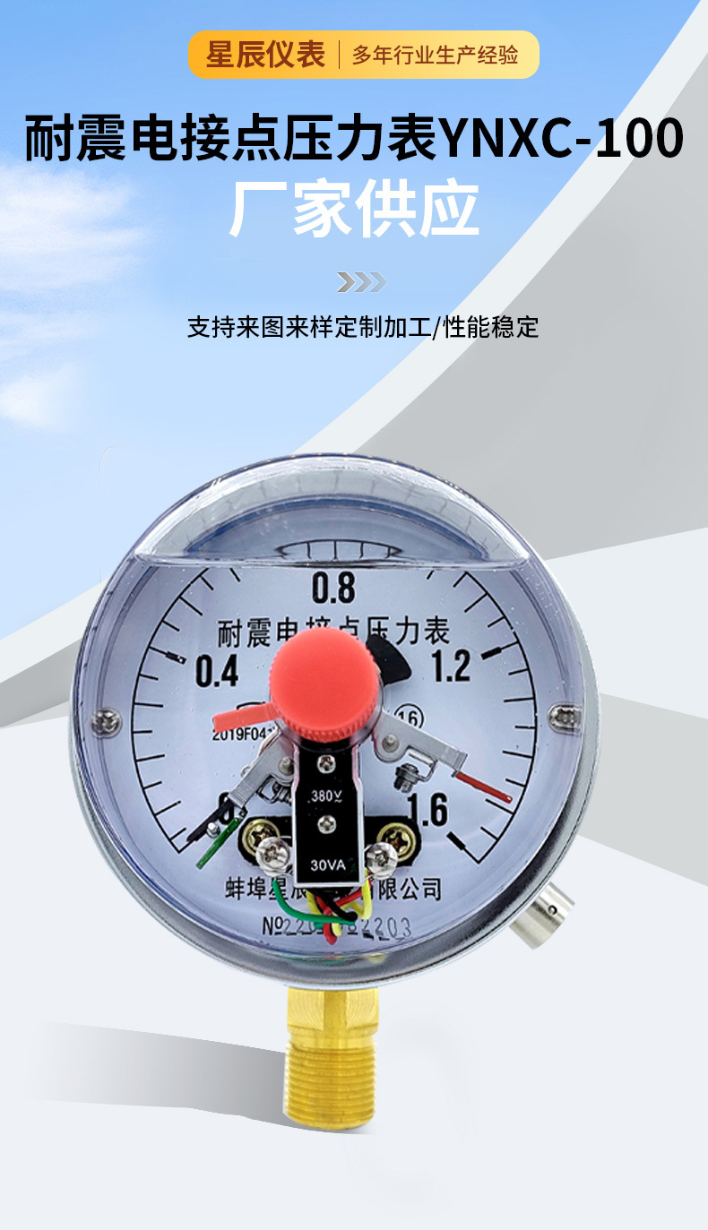 - Wide Compatibility: YNXC-100 seismic electric contact pressure gauge perfect for water pump control and hydraulic systems.