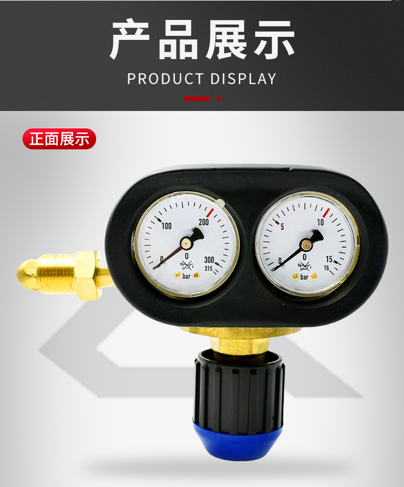 - Key Specs & Performance: Features dual gauges with ranges 0-315 bar and 0-16 bar respectively, providing accurate and reliable gas pressure control.