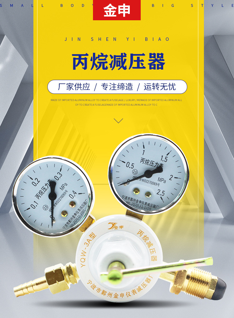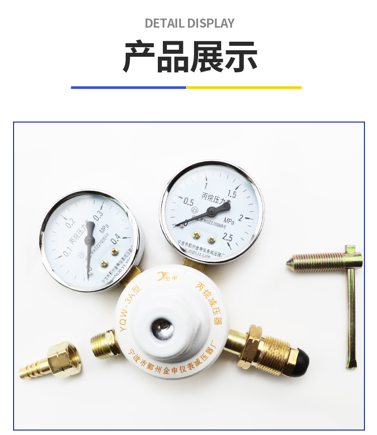 Propane Pressure Regulator YQW-3A Dual Gauge Gas LPG Regulator with Alloy Body and Stable Pressure Adjustment