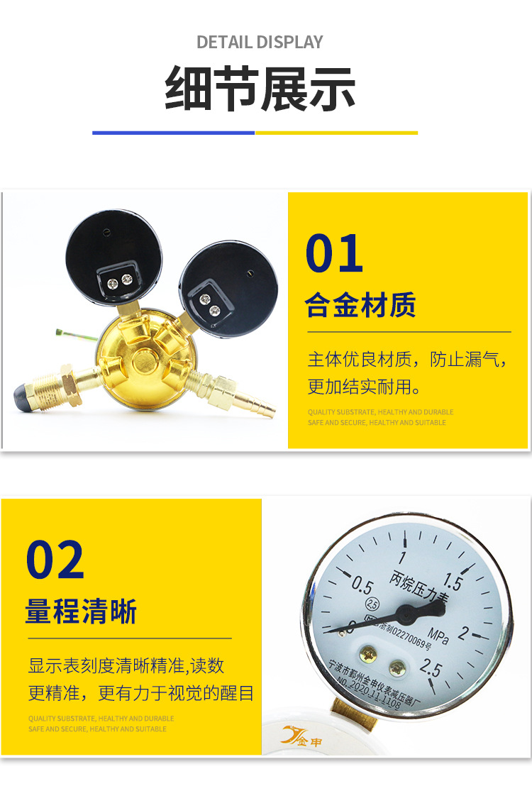 - Key Specs & Performance: Features dual pressure gauges for precise monitoring up to 2.5 MPa, ensuring stable and reliable gas flow for safe operation.