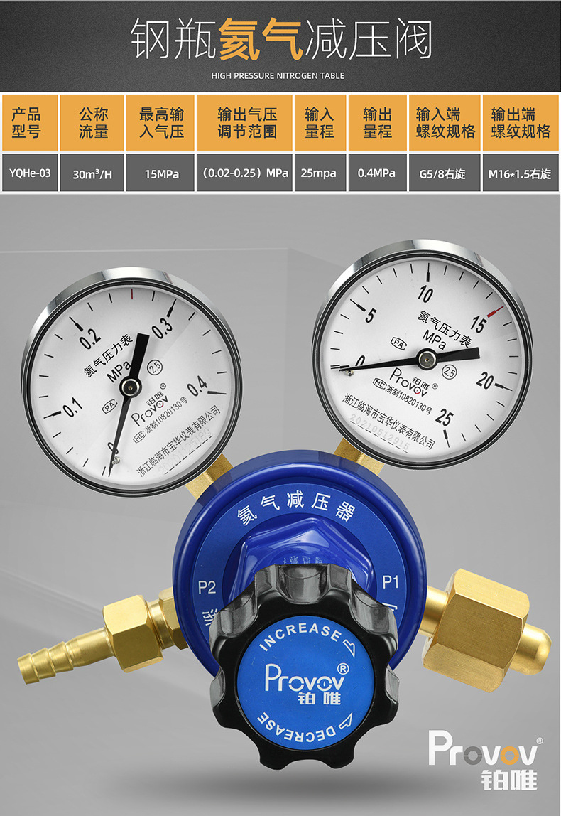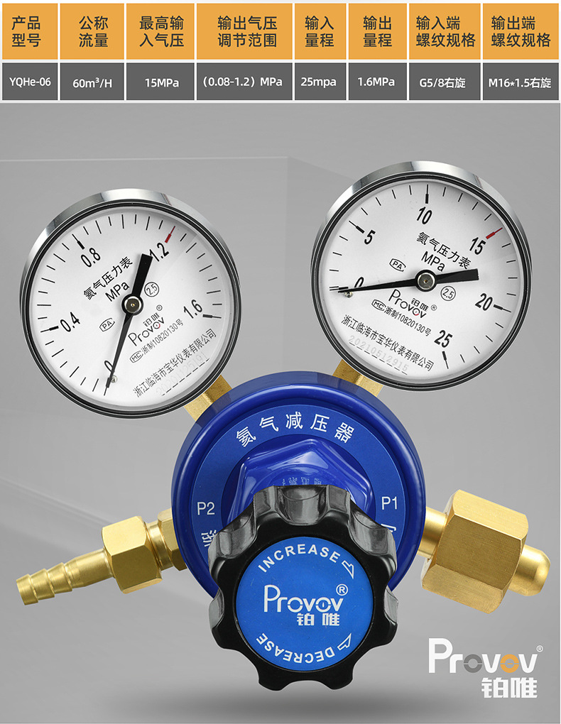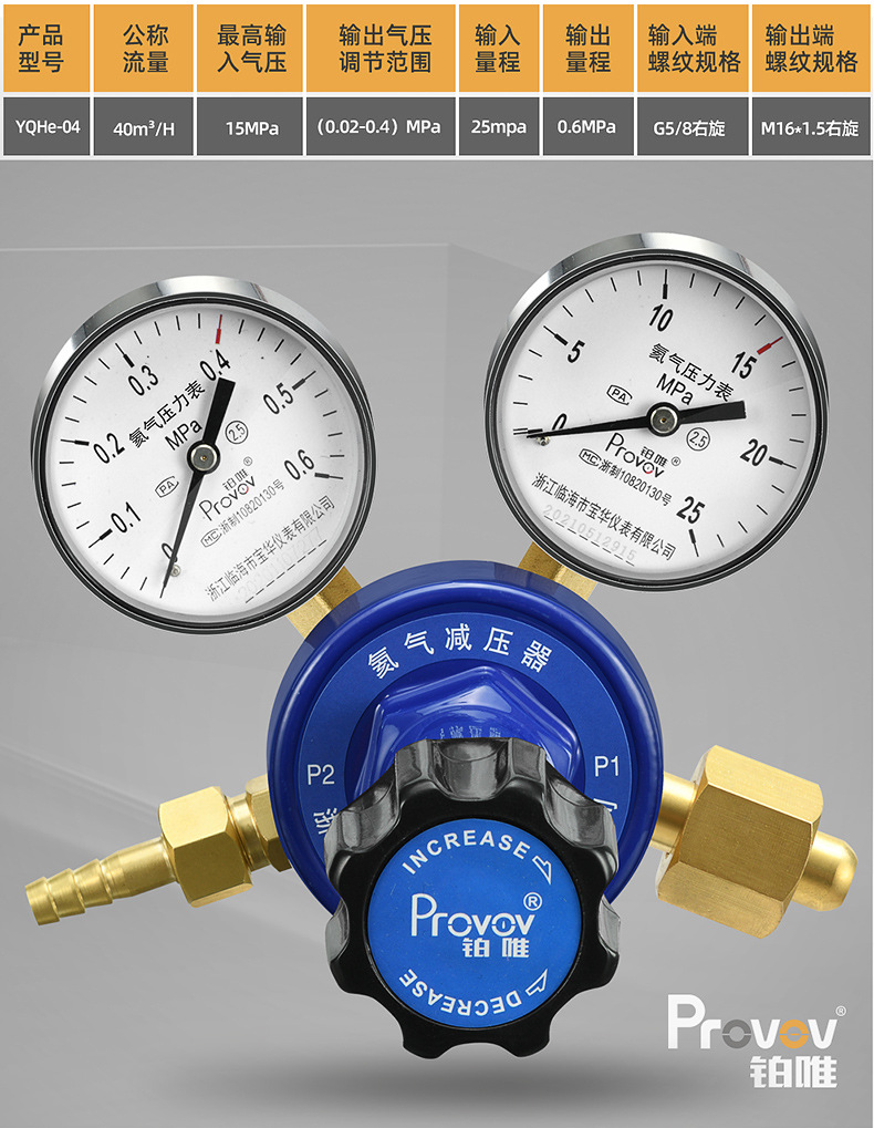 - Key Specs & Performance: Featuring a 25 MPa measurement range and single-stage structure, the Provov YQHE-06 model ensures stable gas pressure output with micro-adjustment capabilities for precise control.