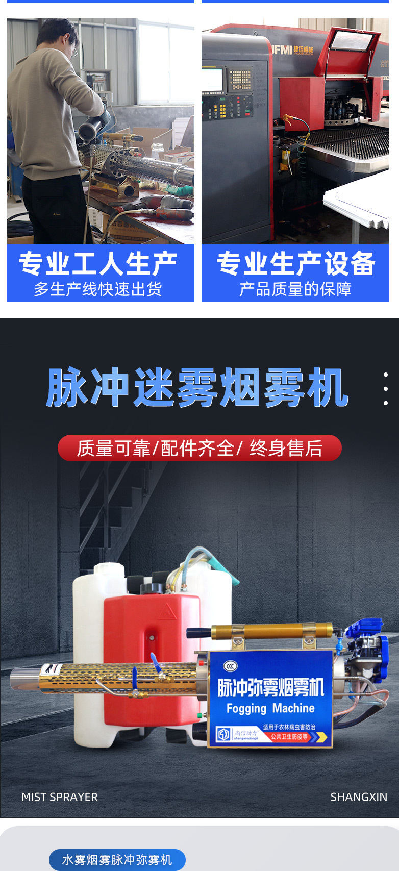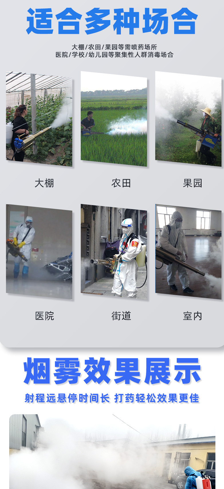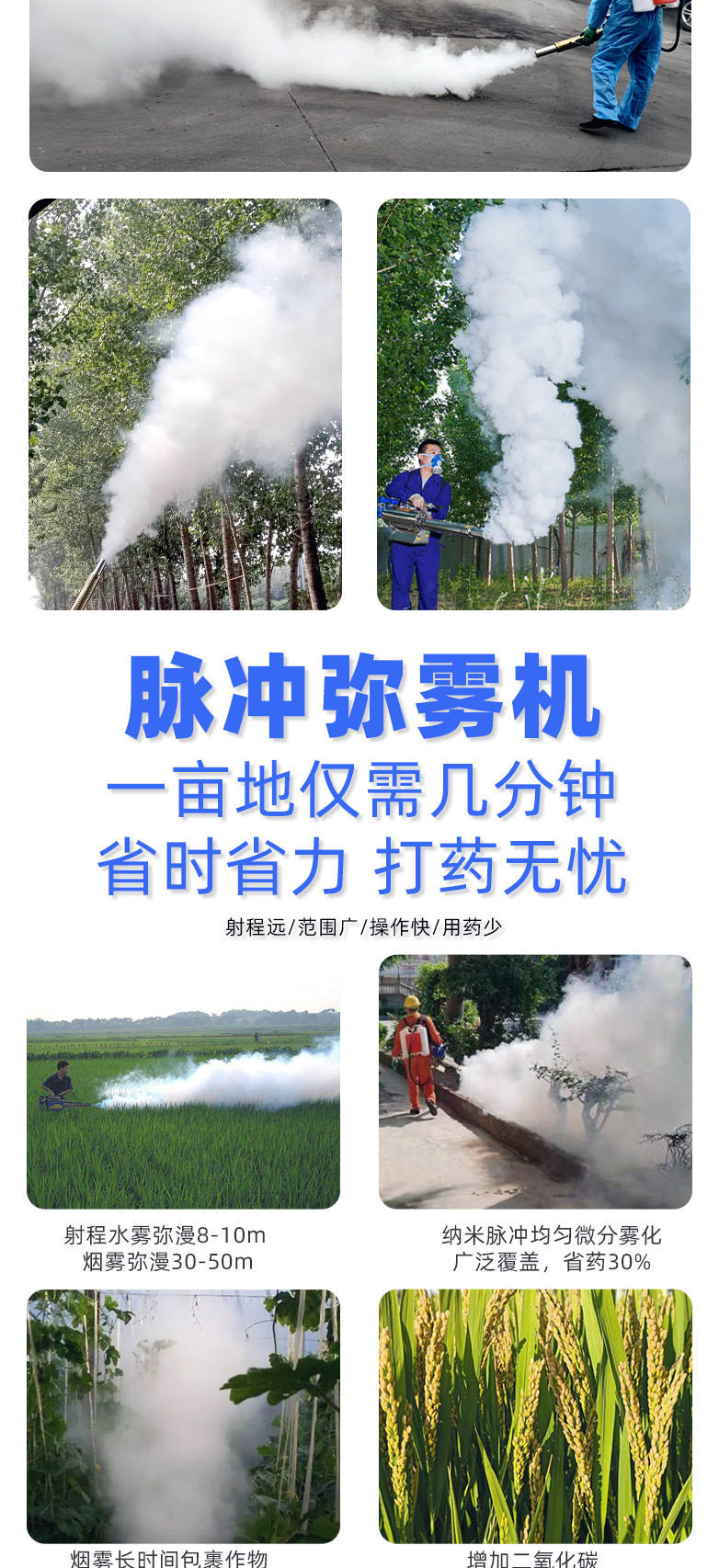 - Wide Compatibility: Versatile pulse fogging machine designed for agricultural pest control, disinfection, and public health sanitation, suitable for various farming and residential applications.