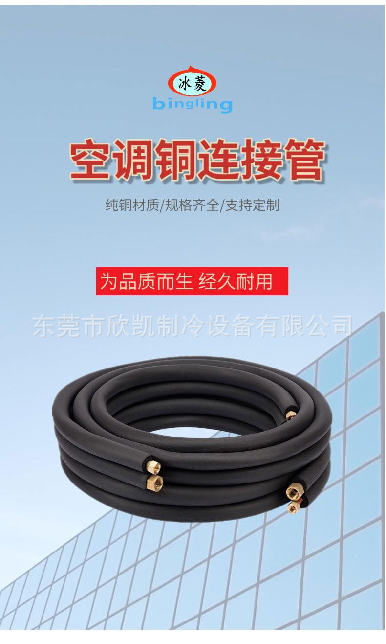 Pure Copper Air Conditioner Connecting Pipe (TP2 Purple Copper Tube, Flame Retardant Insulation Cotton, 1P-5P Universal) for All Major HVAC Brands