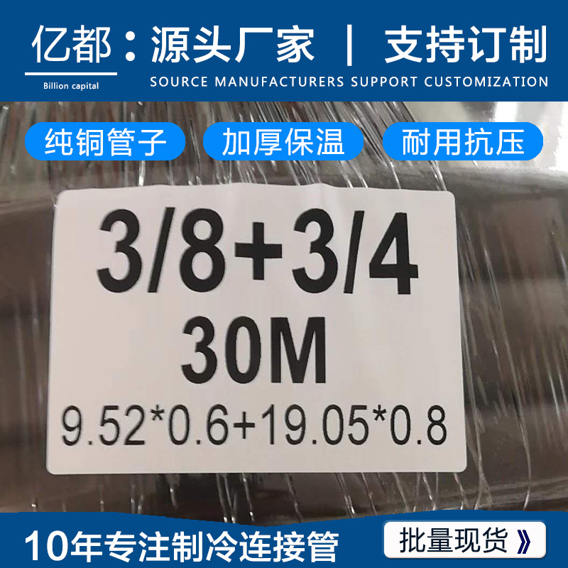 Pure Copper Insulated Refrigeration Connection Tube (9.52*0.6+19.05*0.8) for Air Conditioner Units, Durable & Pressure Resistant