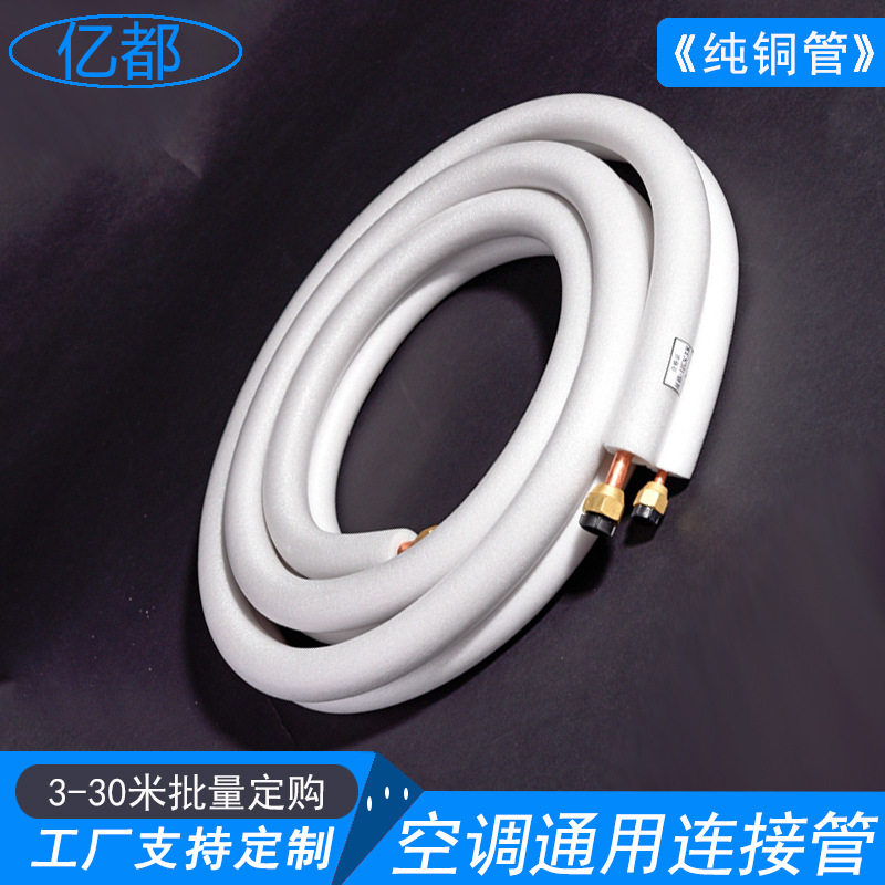 Pure Copper Air Conditioner Connecting Pipe (TP2 Purple Copper Tube, Flame Retardant Insulation Cotton, 1P-5P Universal) for All Major HVAC Brands