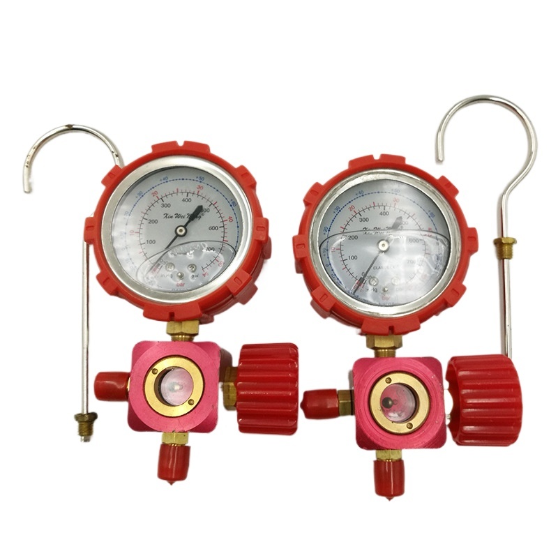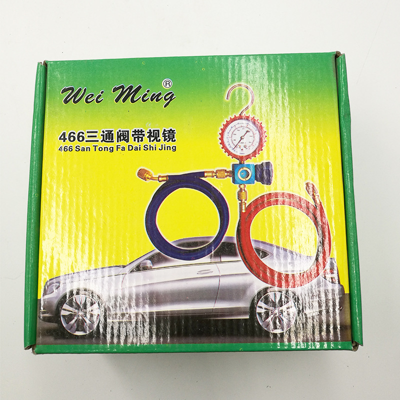 R12 Refrigerant Manifold Gauge Set with Sight Glass Triple Valve for HVAC AC Charging