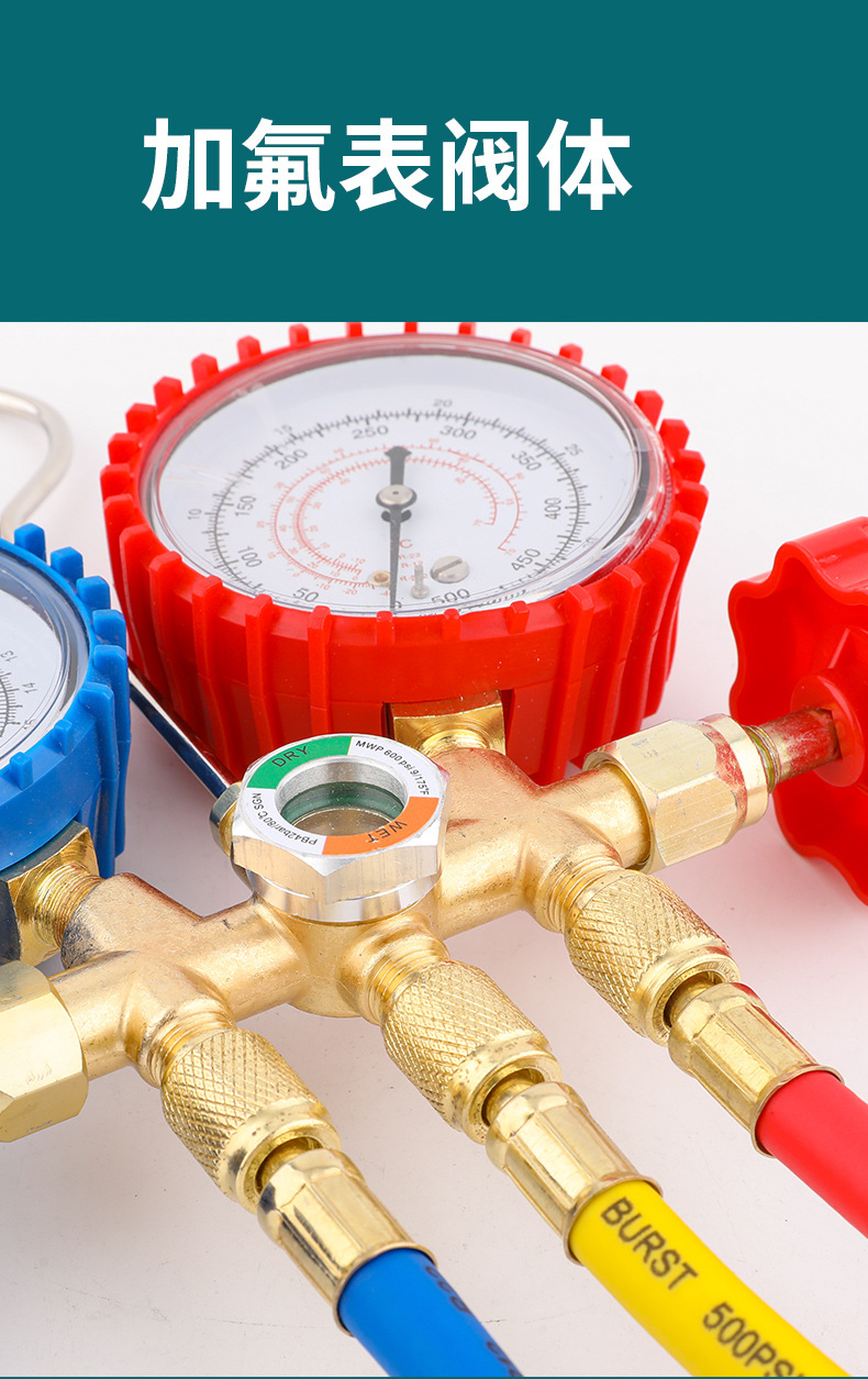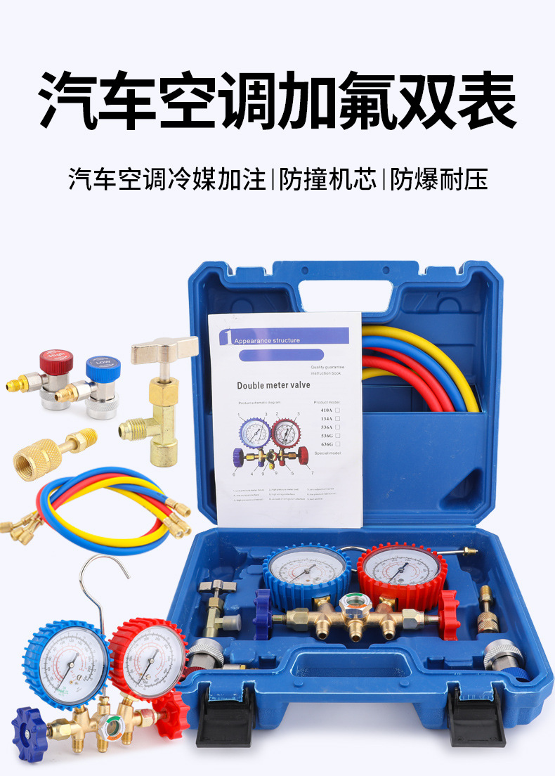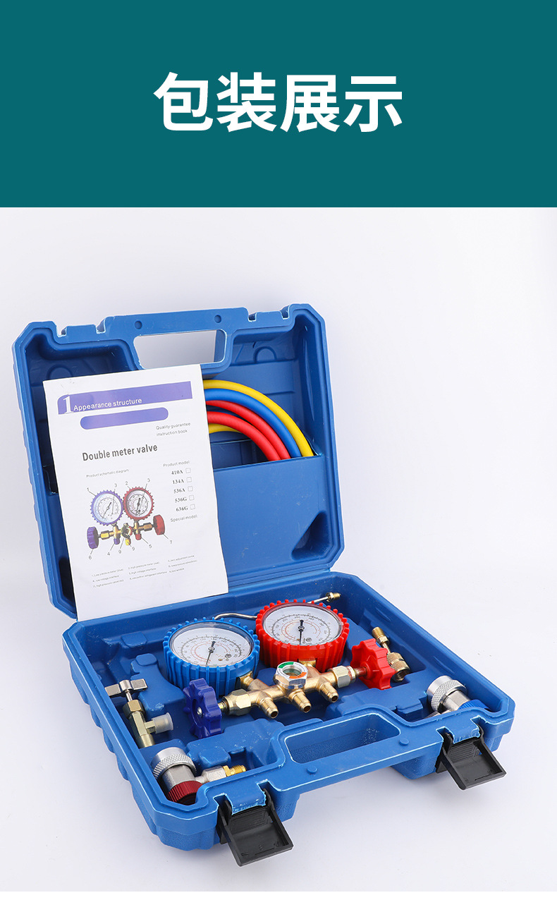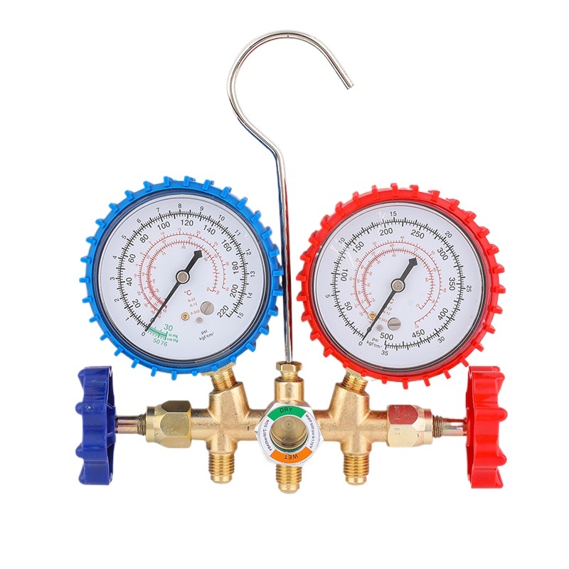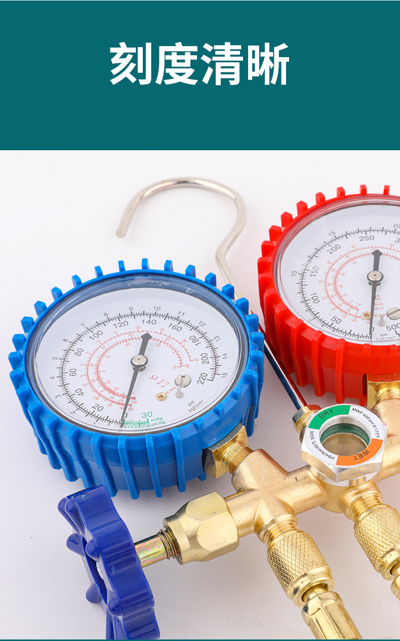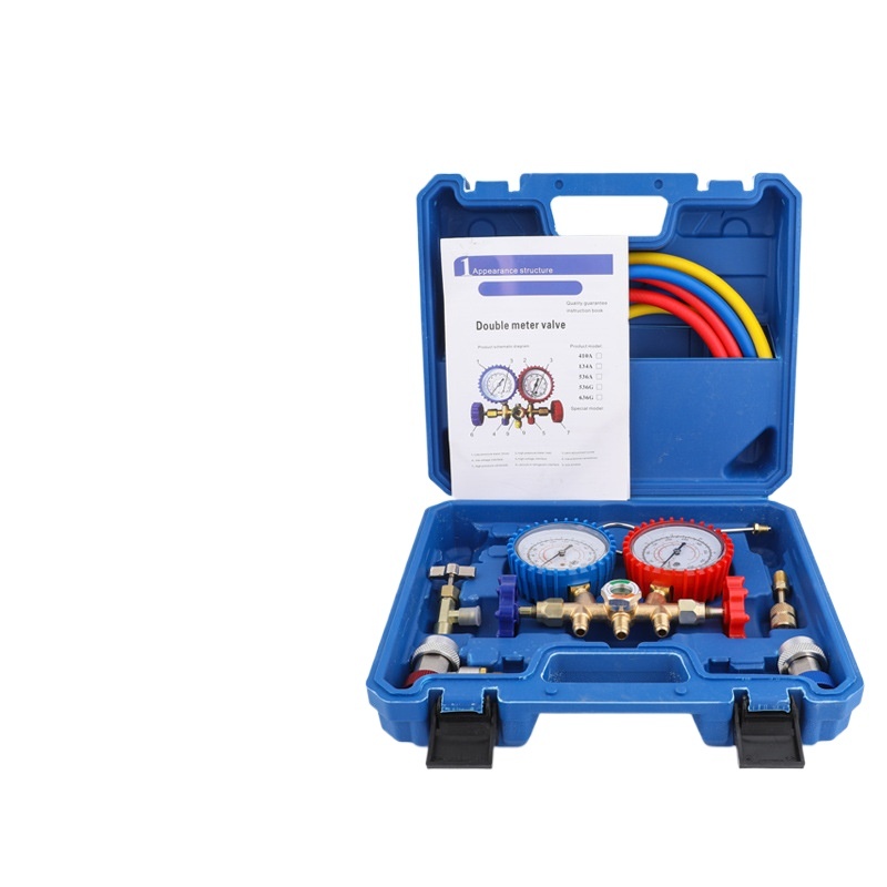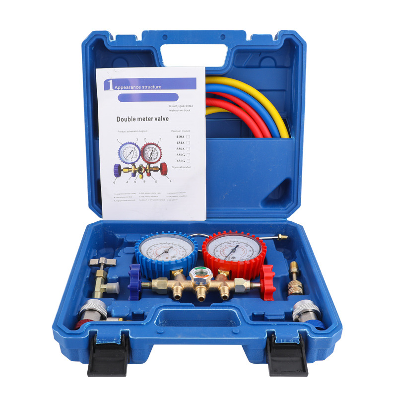 HVAC AC Refrigerant Manifold Gauge Set (R22 R32 R410 R134) with Dual Gauges and Hoses