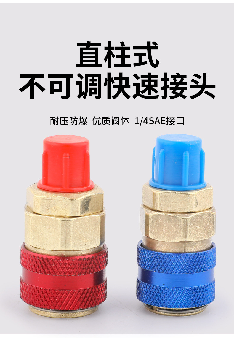- Key Specs & Performance: Features distinct high (red) and low (blue) pressure quick couplers for easy identification and efficient refrigerant addition, with an internal non-adjustable straight through design for reliable flow.