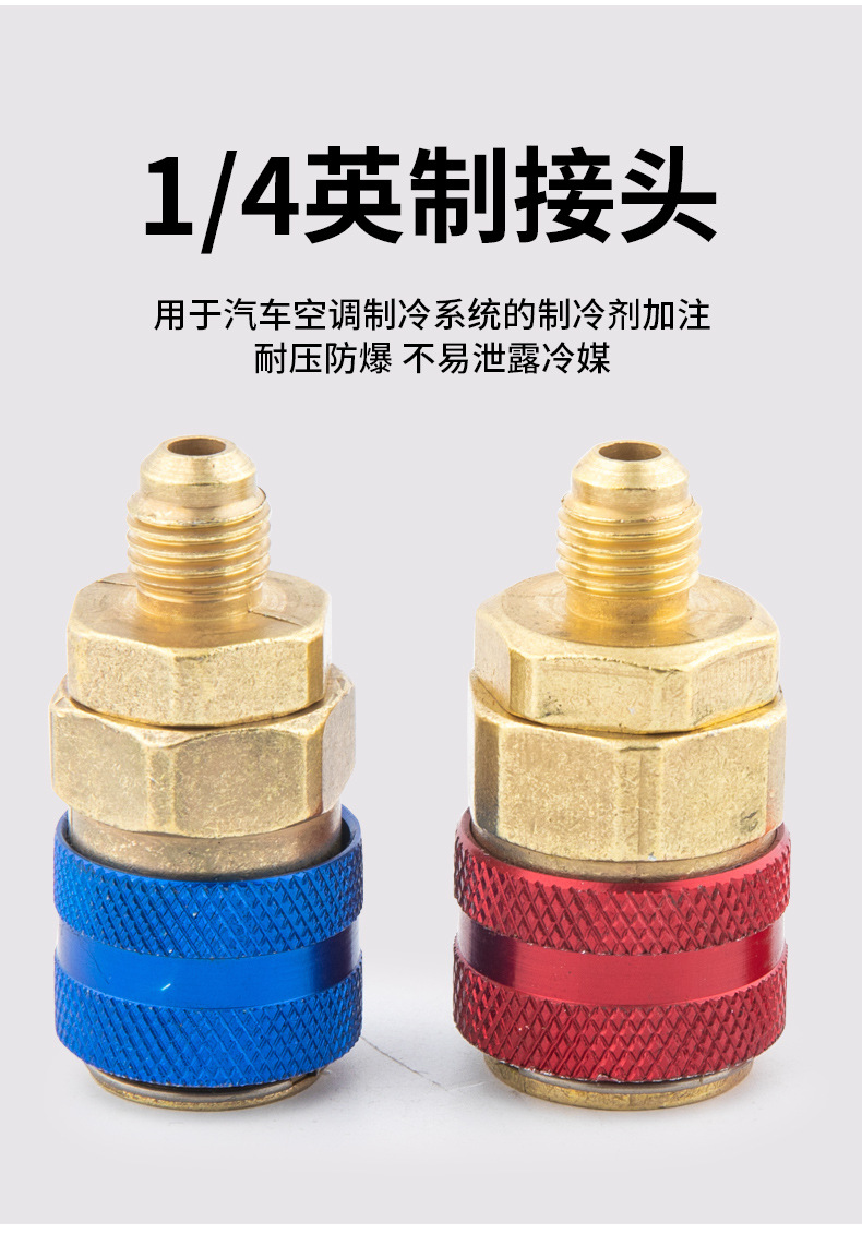 R134a Straight Quick Coupler QC-12 High/Low Pressure Fluorine Charging Connector for Car AC System