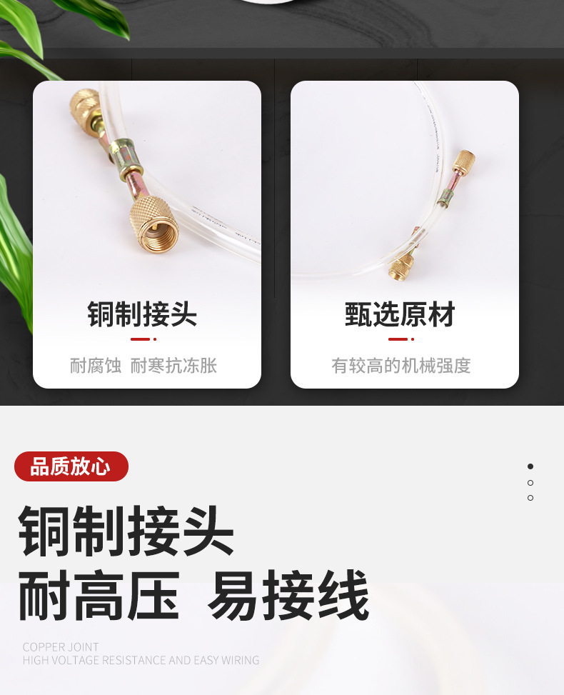 - What You Get: Includes one R22 refrigerant charging hose with copper connectors, ready for immediate use. Made with high-quality materials and fine polishing treatment to ensure safety and efficiency during HVAC maintenance.