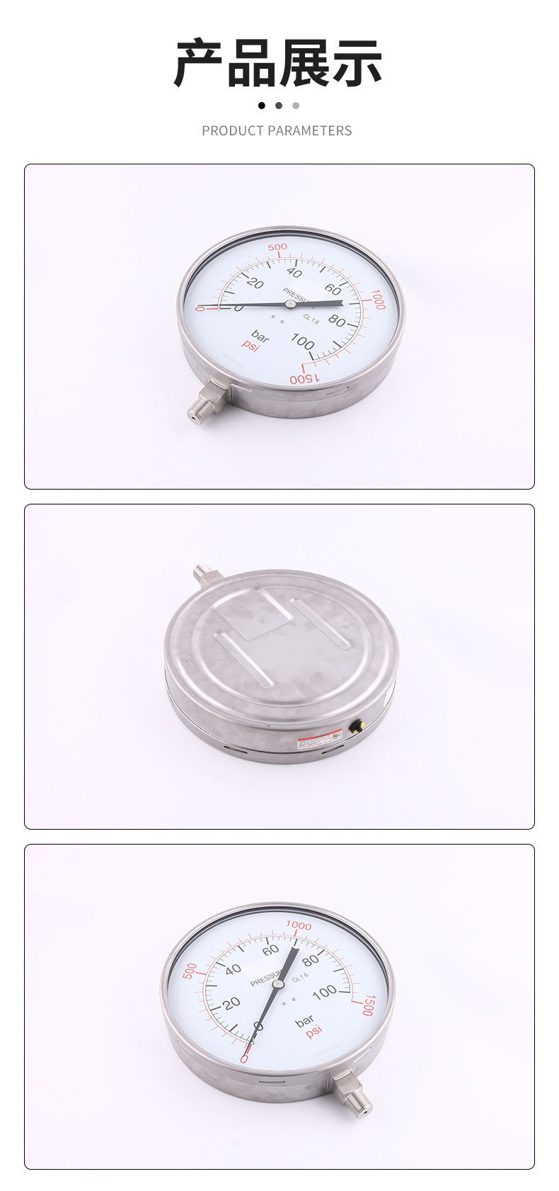 - Key Specs & Performance: This 250mm radial pressure gauge offers a measurement range of 0-100 bar / 0-1500 psi with a high accuracy class of CL1.6, providing reliable and precise pressure readings for optimal system operation.