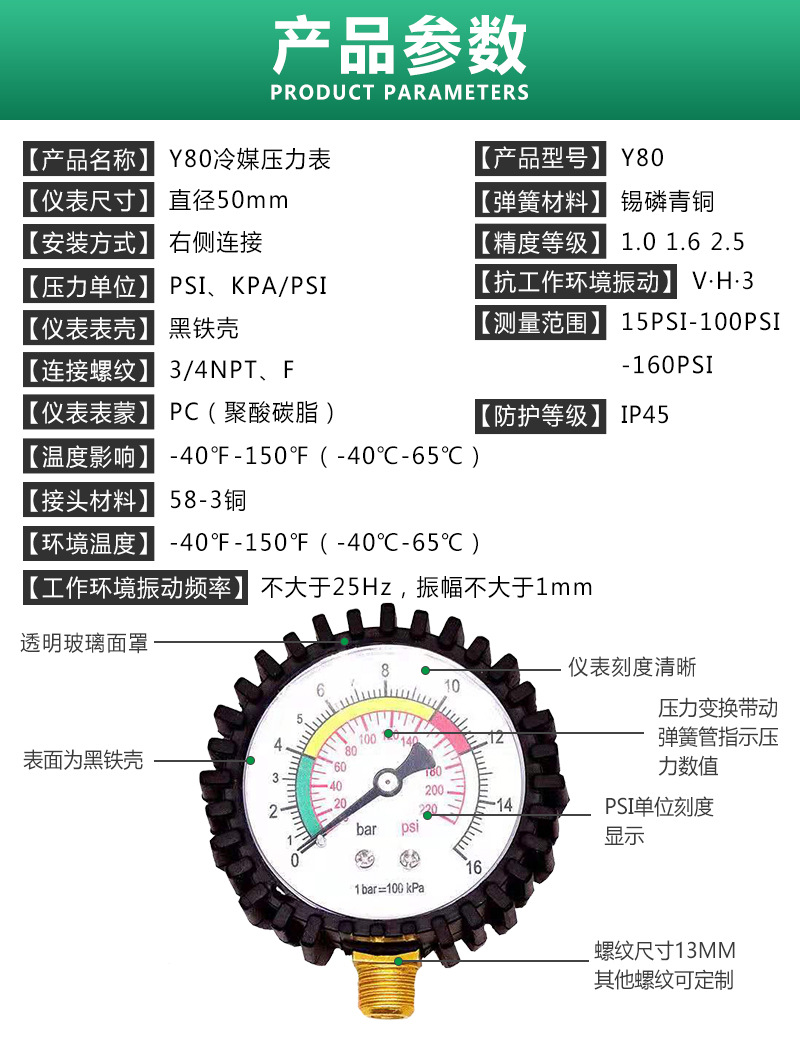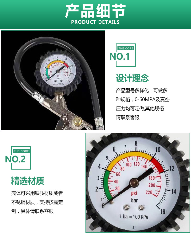 - Versatile Compatibility: Designed for measuring oil pressure, gas pressure, liquid pressure, and water pressure, making it suitable for a wide range of applications including tire inflator pumps.